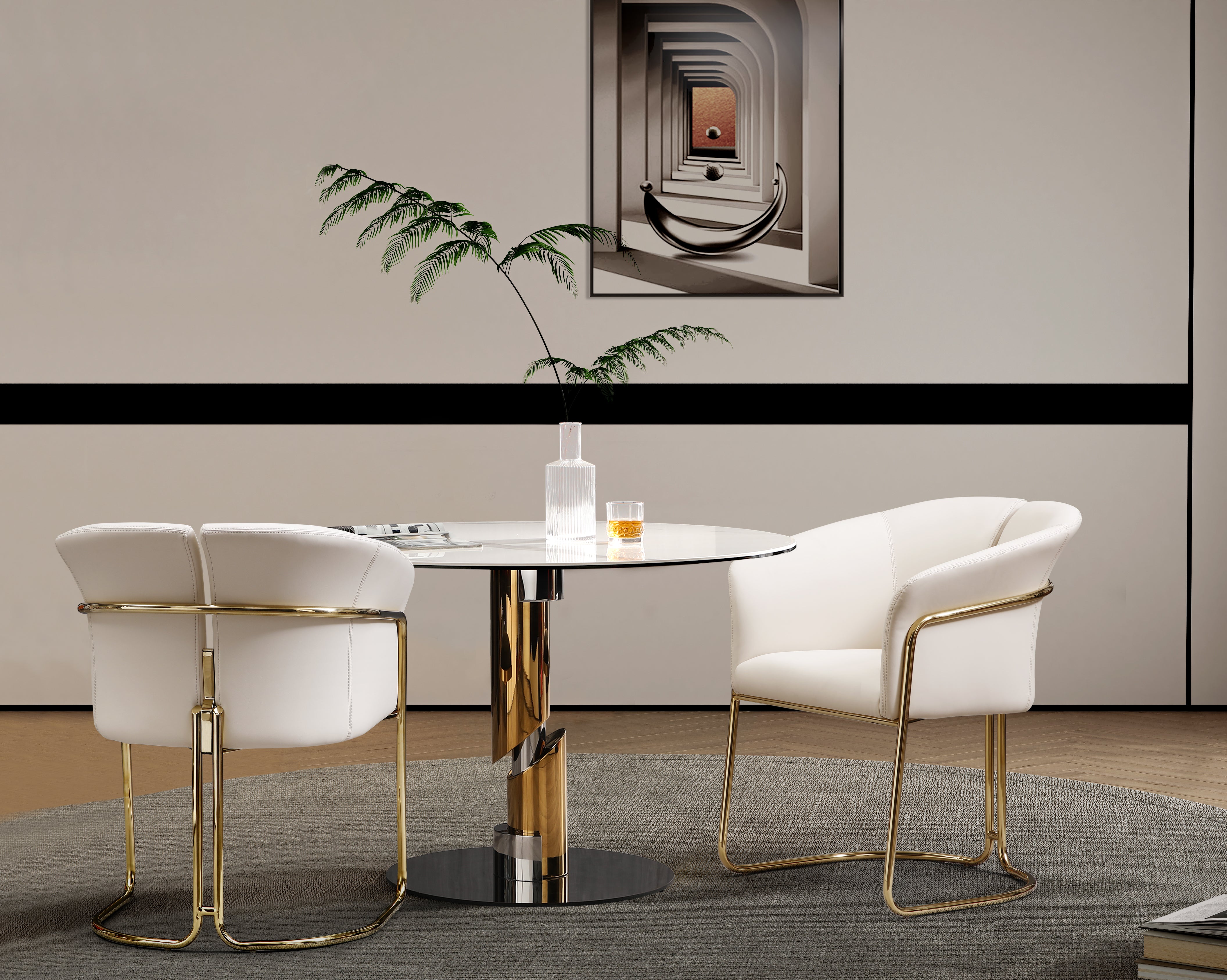 Beige and Gold Faux Leather and Metal Partially Open Back Dining Arm Passer au contenu