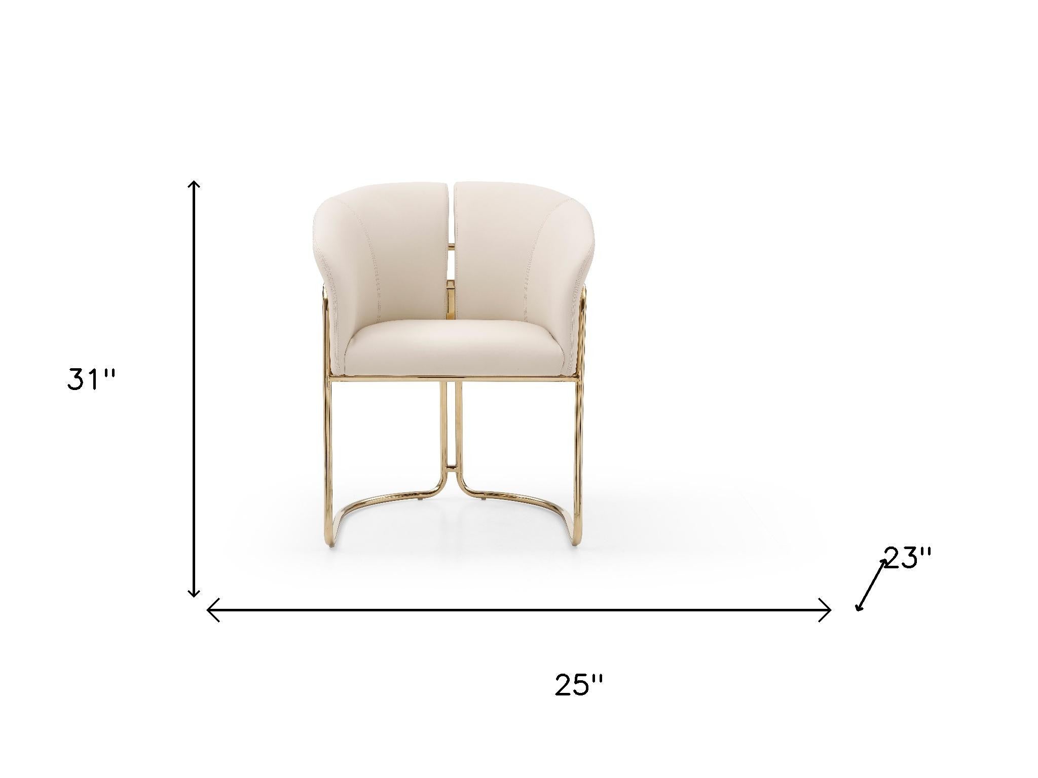Beige and Gold Faux Leather and Metal Partially Open Back Dining Arm Chair