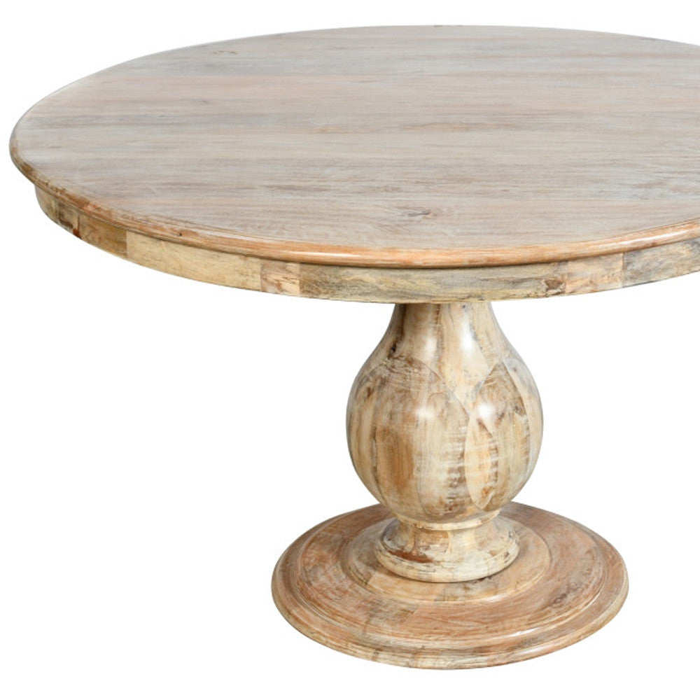 Five Piece Natural Round Solid Wood Dining Set with Four Chairs