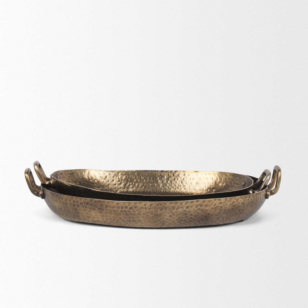 Set of Two Gold Oval Metal Handmade Serving Tray With Handles