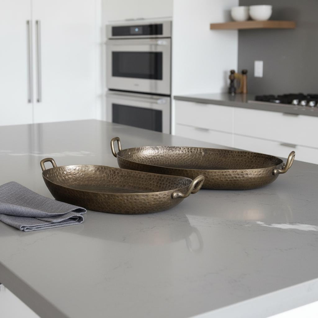 Set of Two Gold Oval Metal Handmade Serving Tray With Handles - Passer au contenu