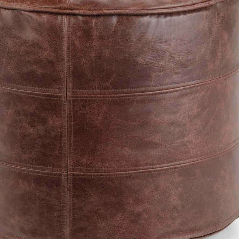 18" Brown Leather Round Pouf Ottoman Passer au contenu