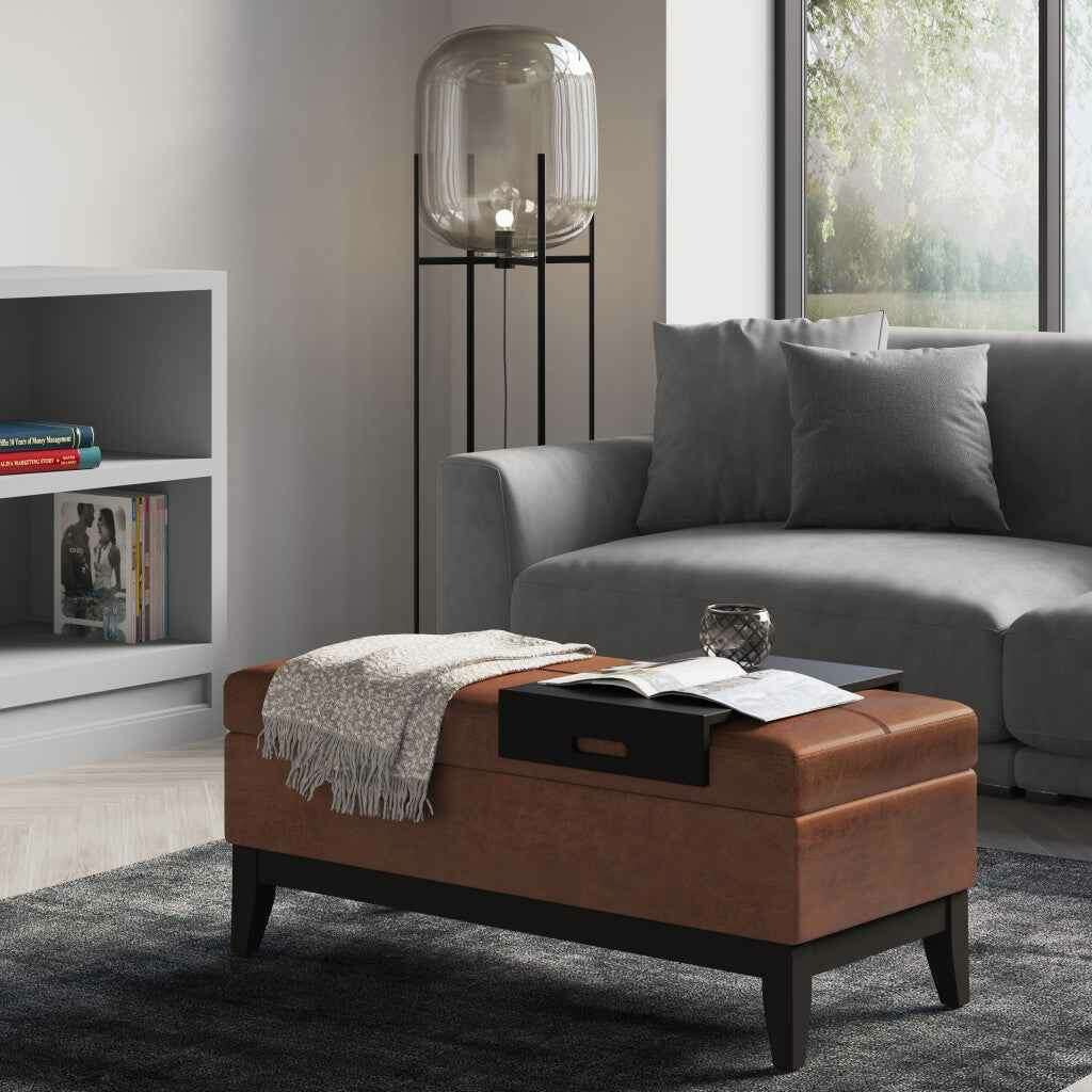 42" Dark Brown and Brown Upholstery Storage Ottoman Passer au contenu