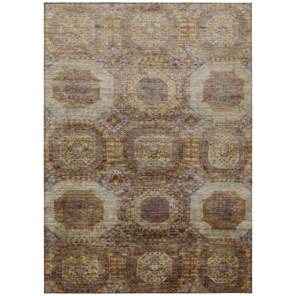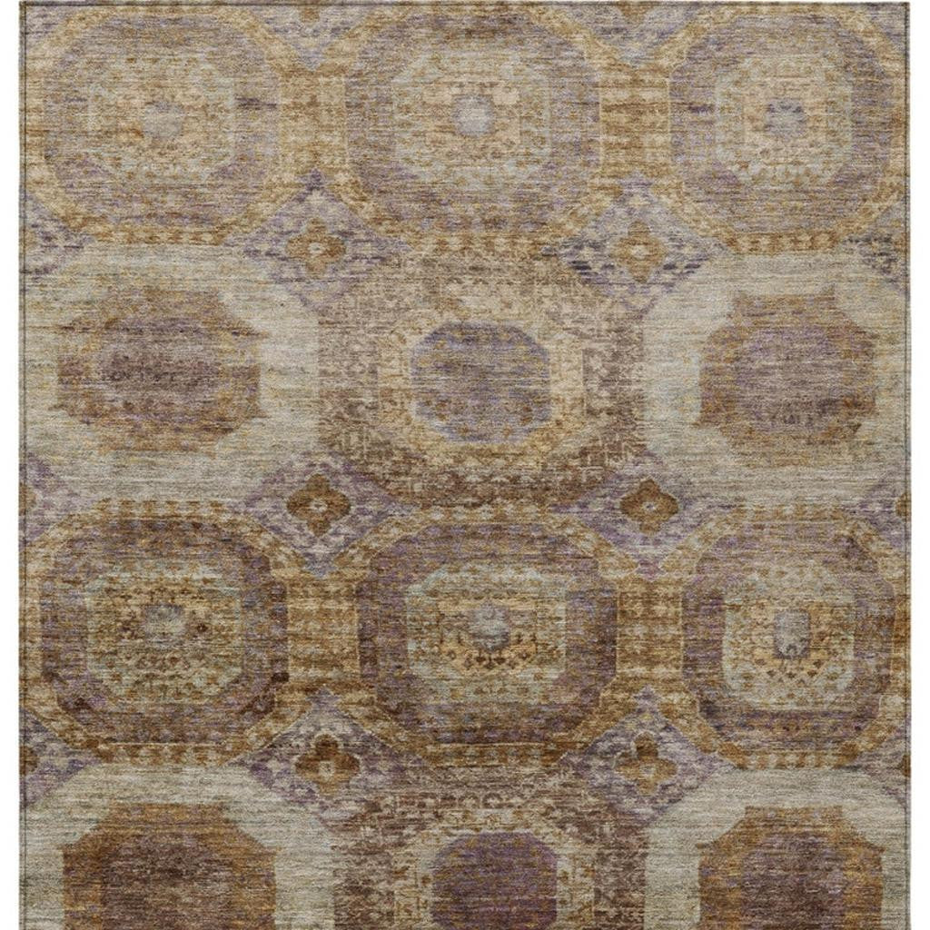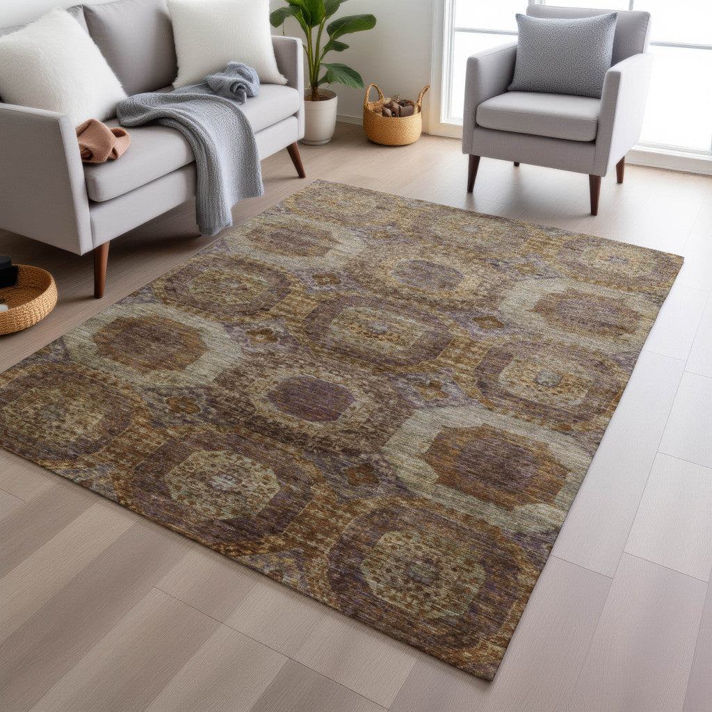 10' X 14' Rust And Beige Medallion Washable Indoor Outdoor Area Rug
