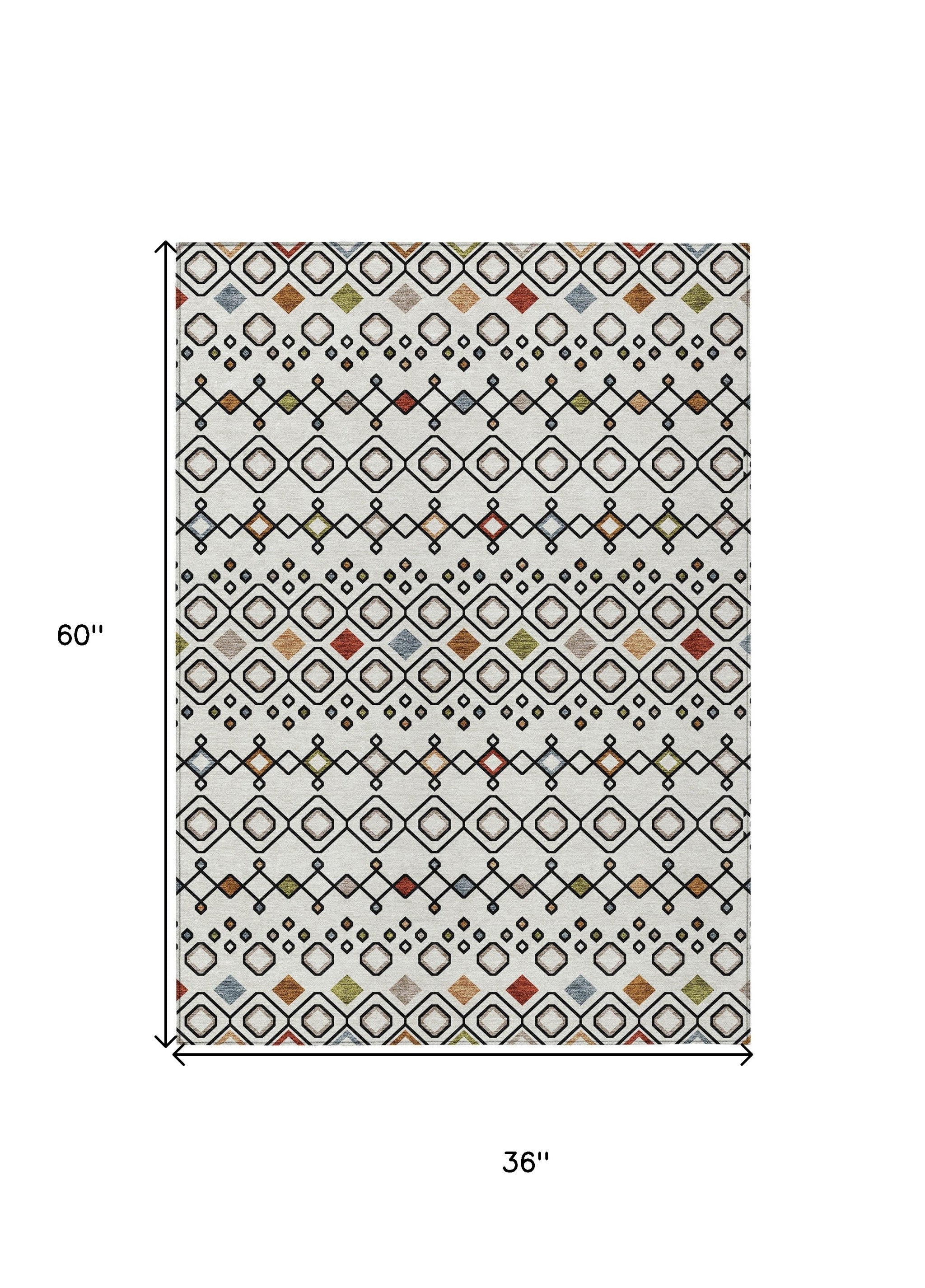 3' X 5' Ivory Red And Gray Geometric Washable Indoor Outdoor Area Rug