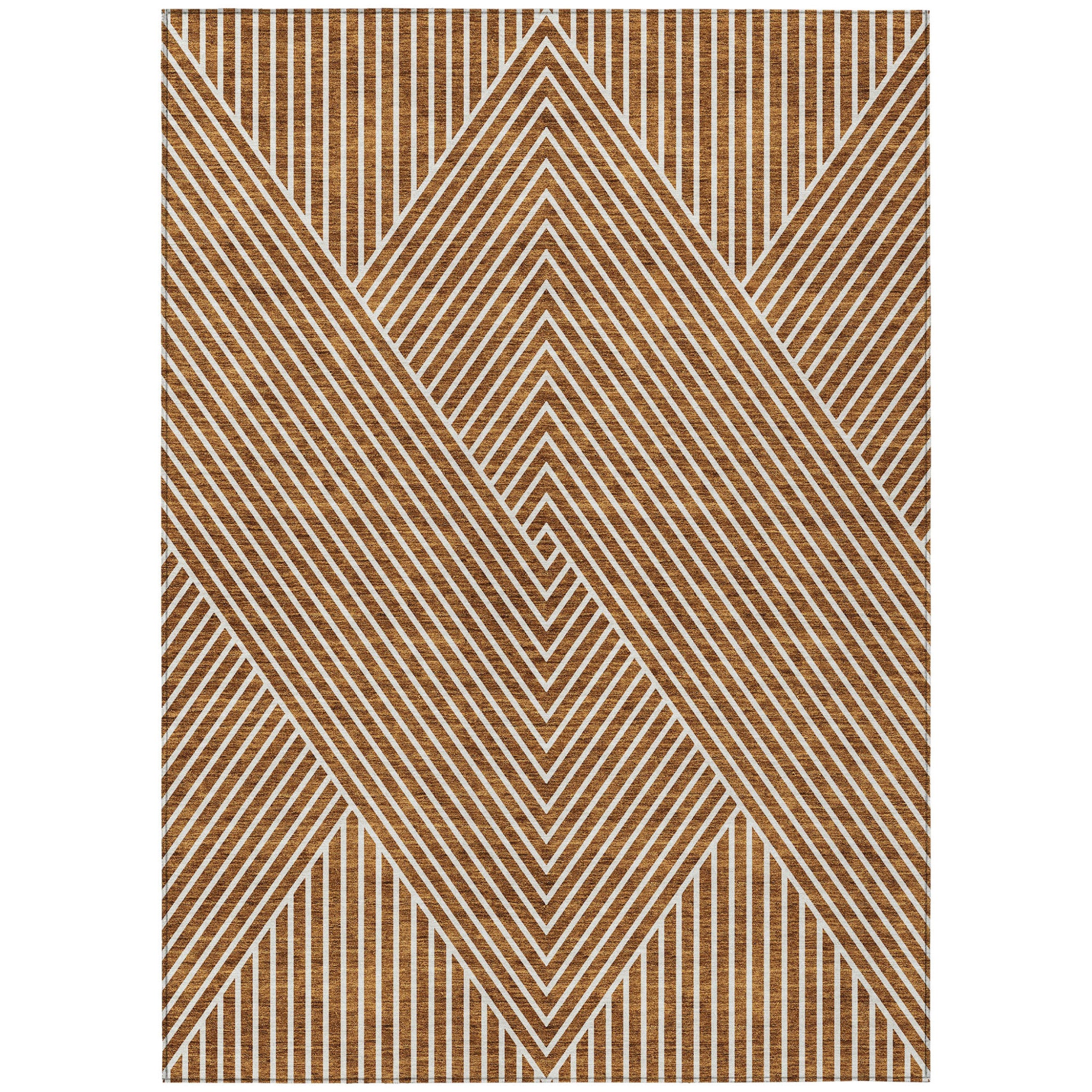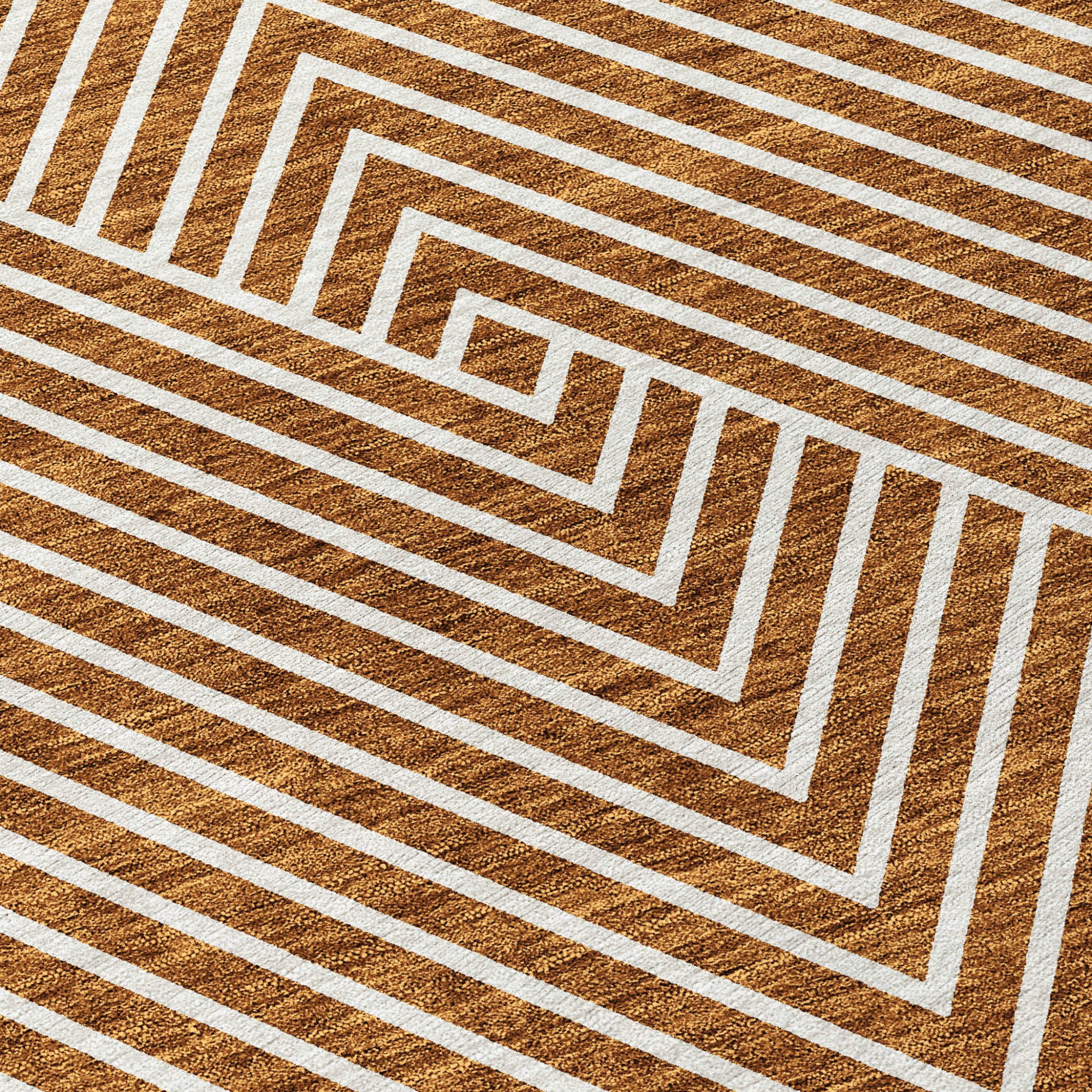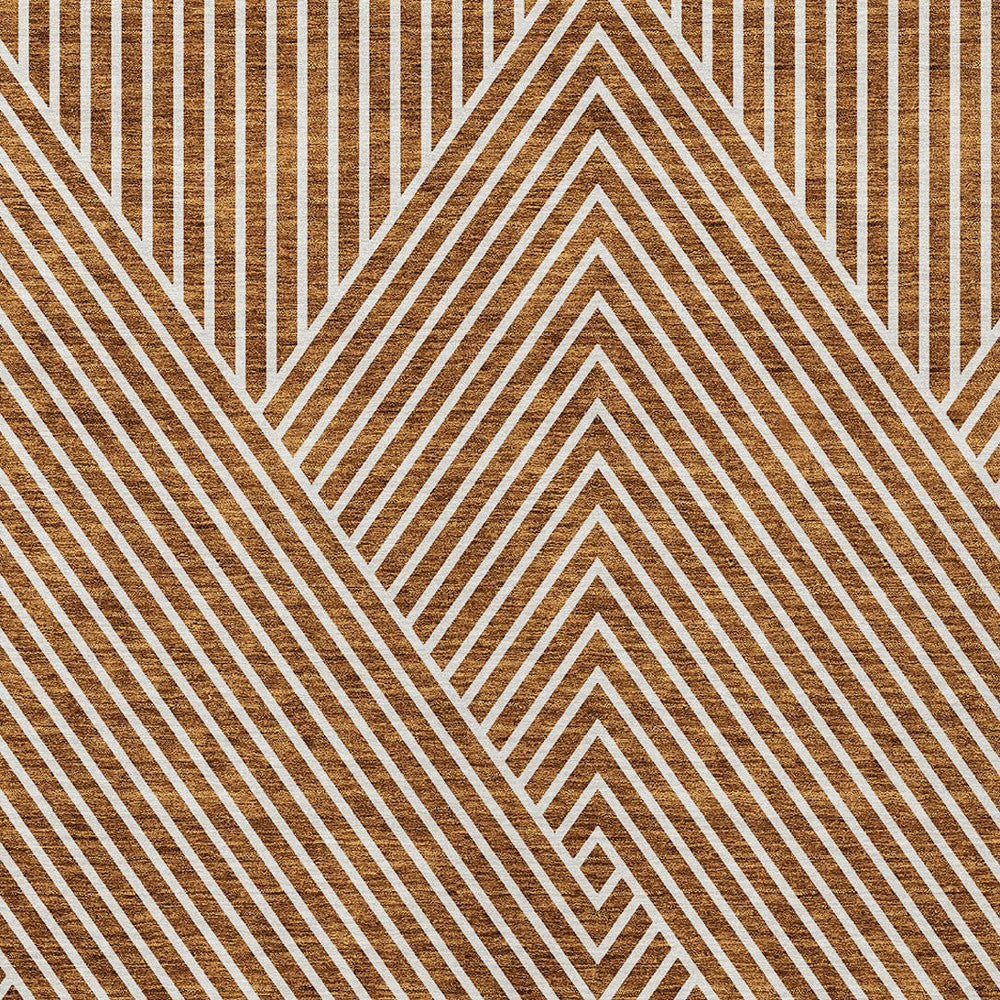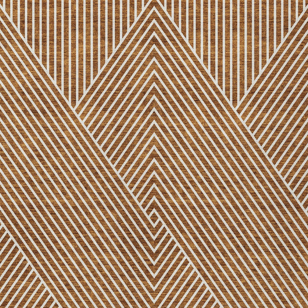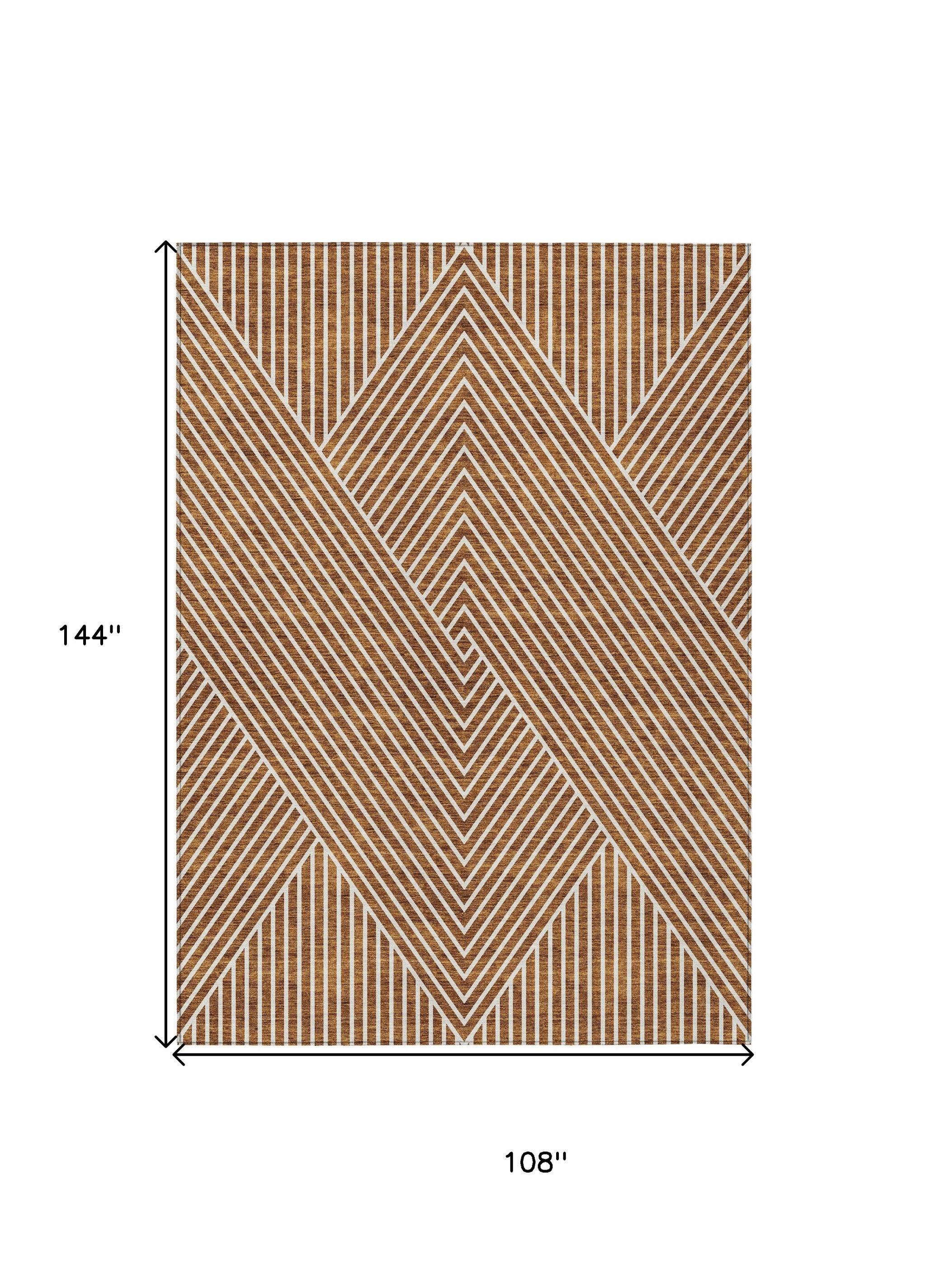 9' X 12' Terra Cotta And Ivory Geometric Washable Indoor Outdoor Area Rug