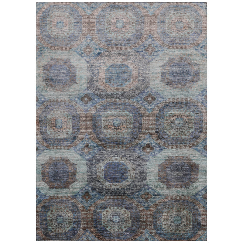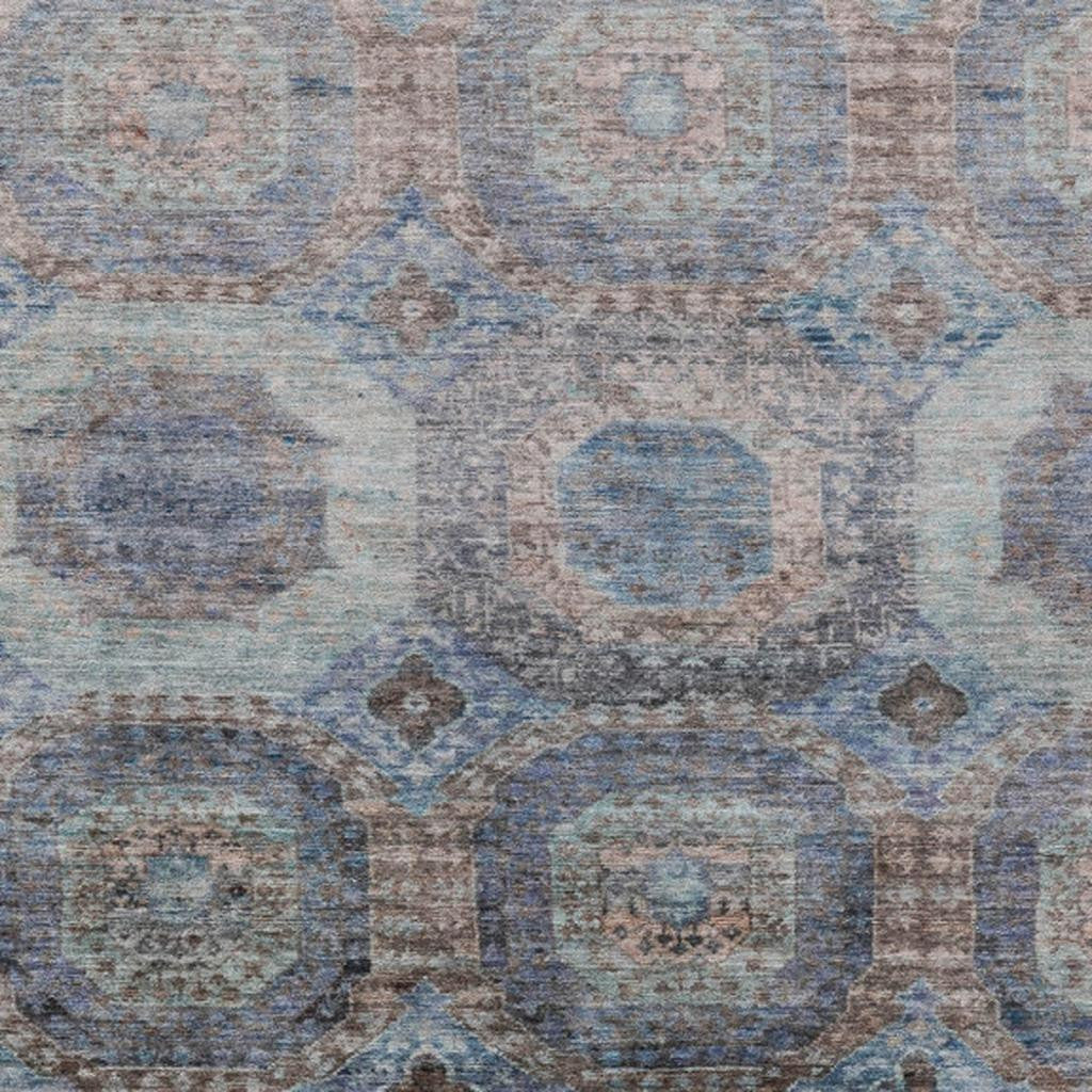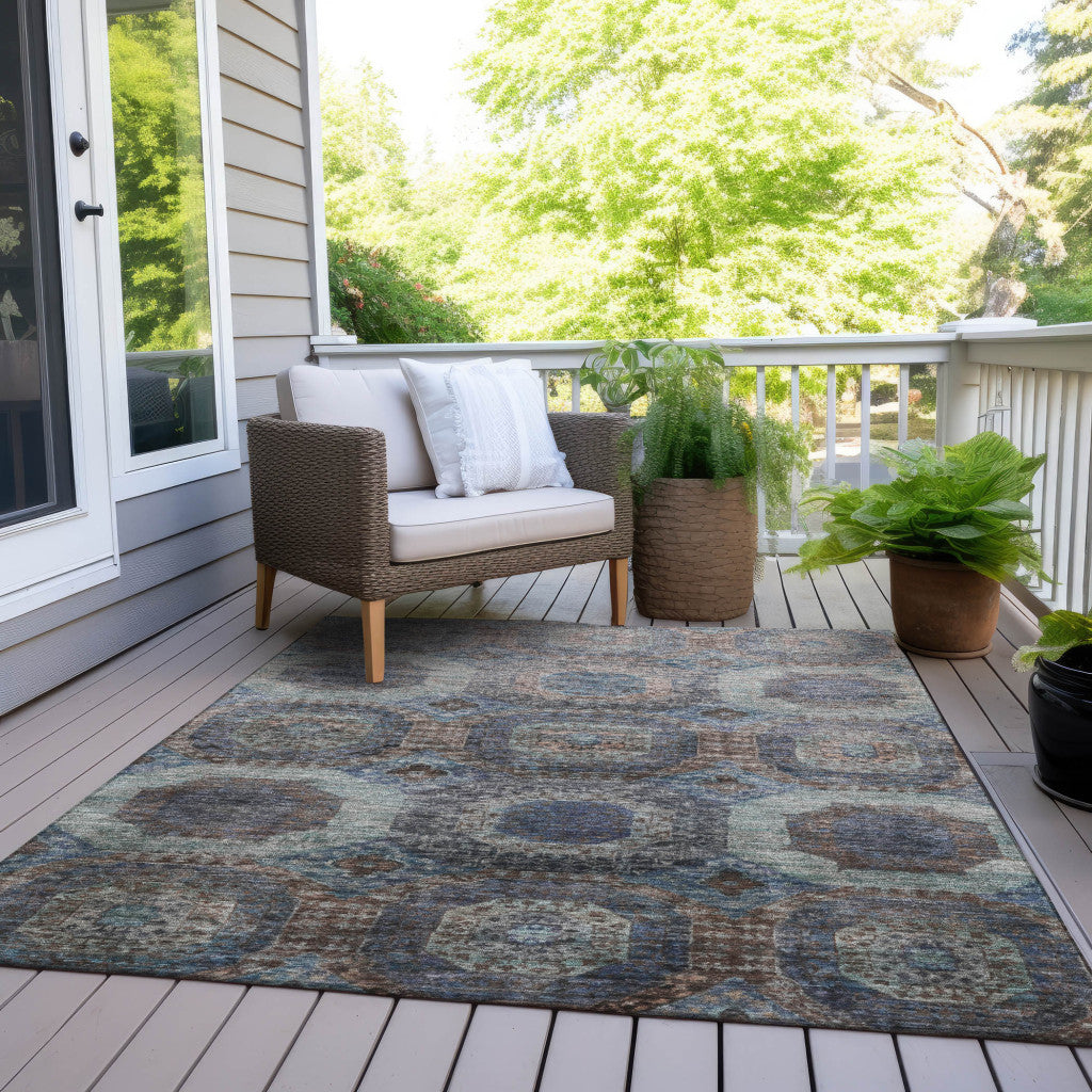 5' X 8' Teal Blue And Copper Medallion Washable Indoor Outdoor Area Rug