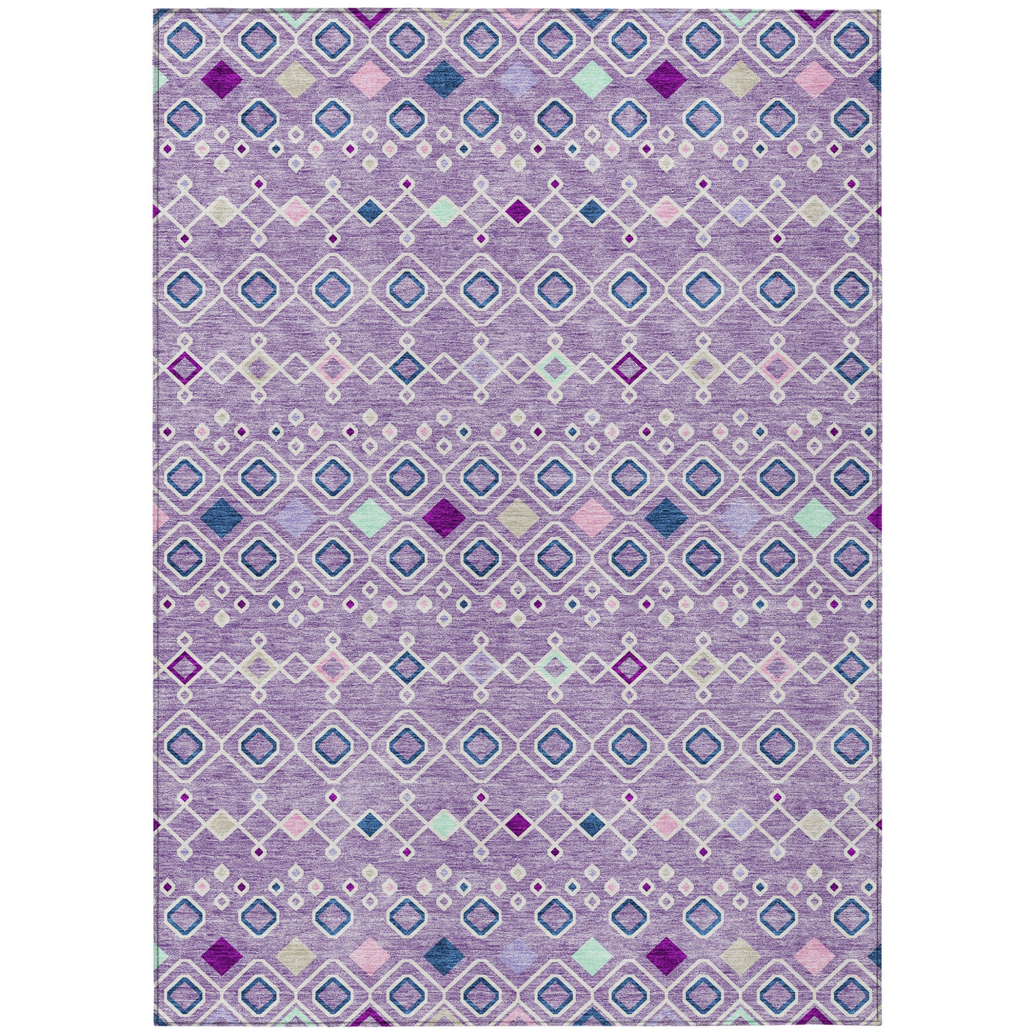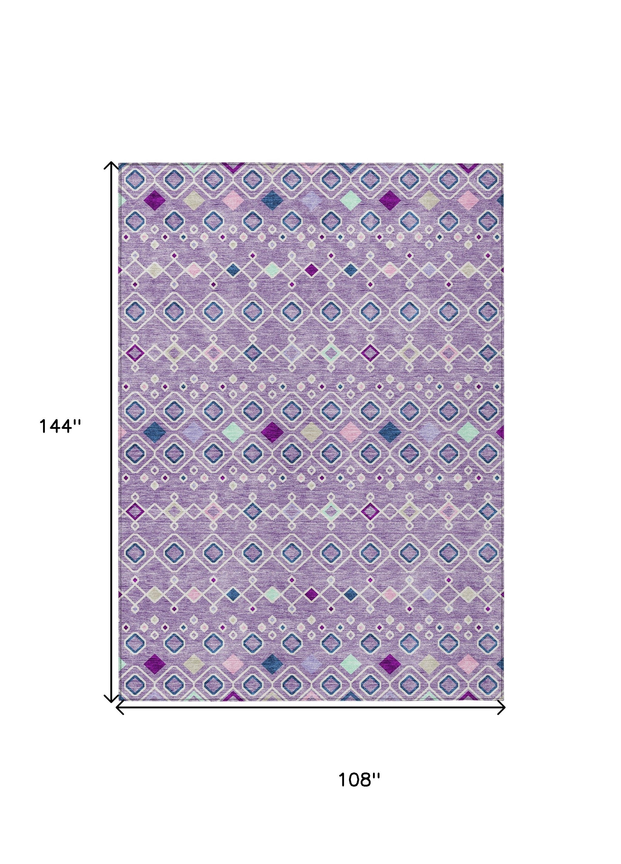 9' X 12' Lavender Ivory And Blue Geometric Washable Indoor Outdoor Area Rug