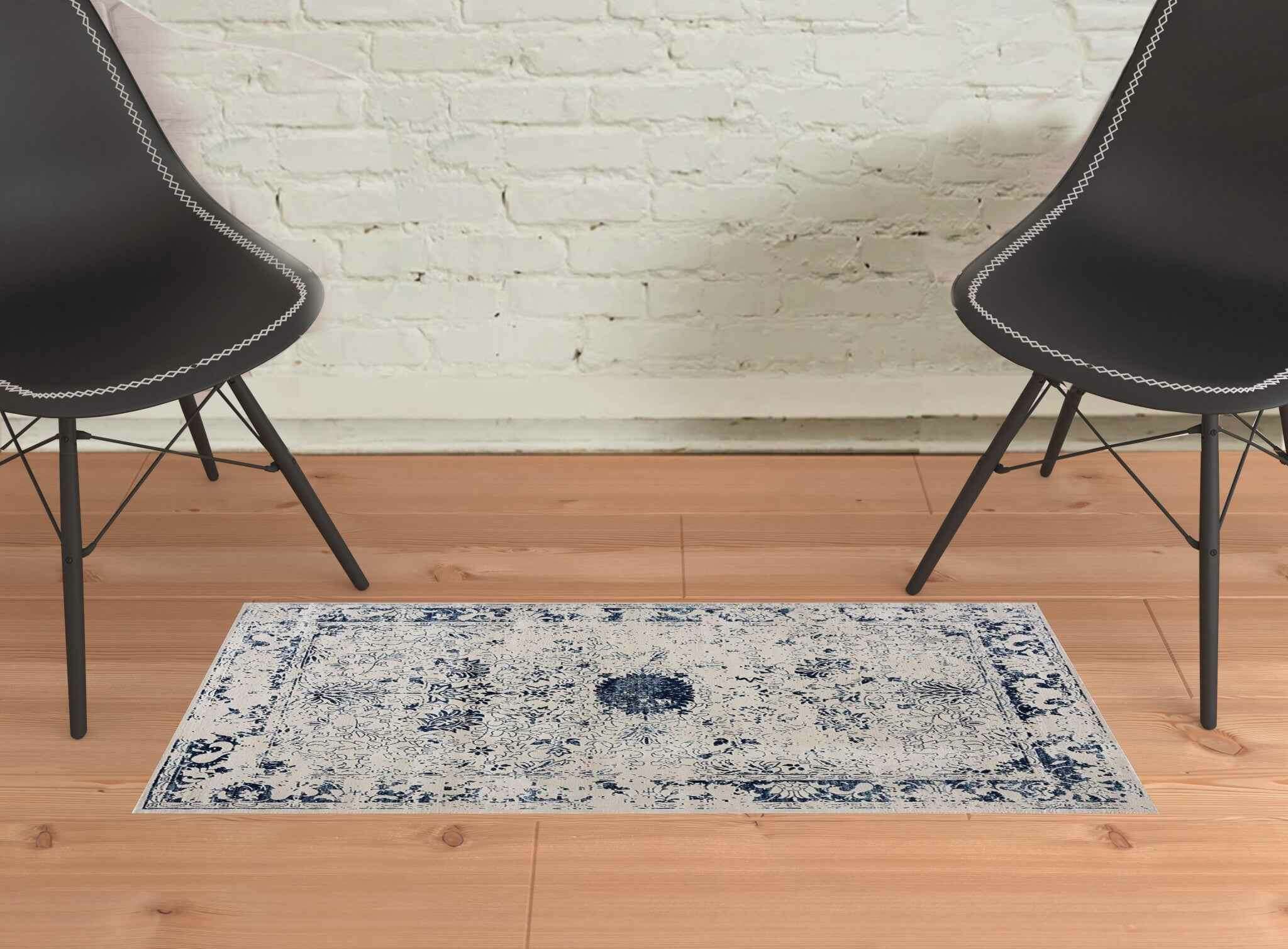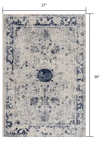 2’ X 3’ Navy Blue Distressed Floral Scatter Rug