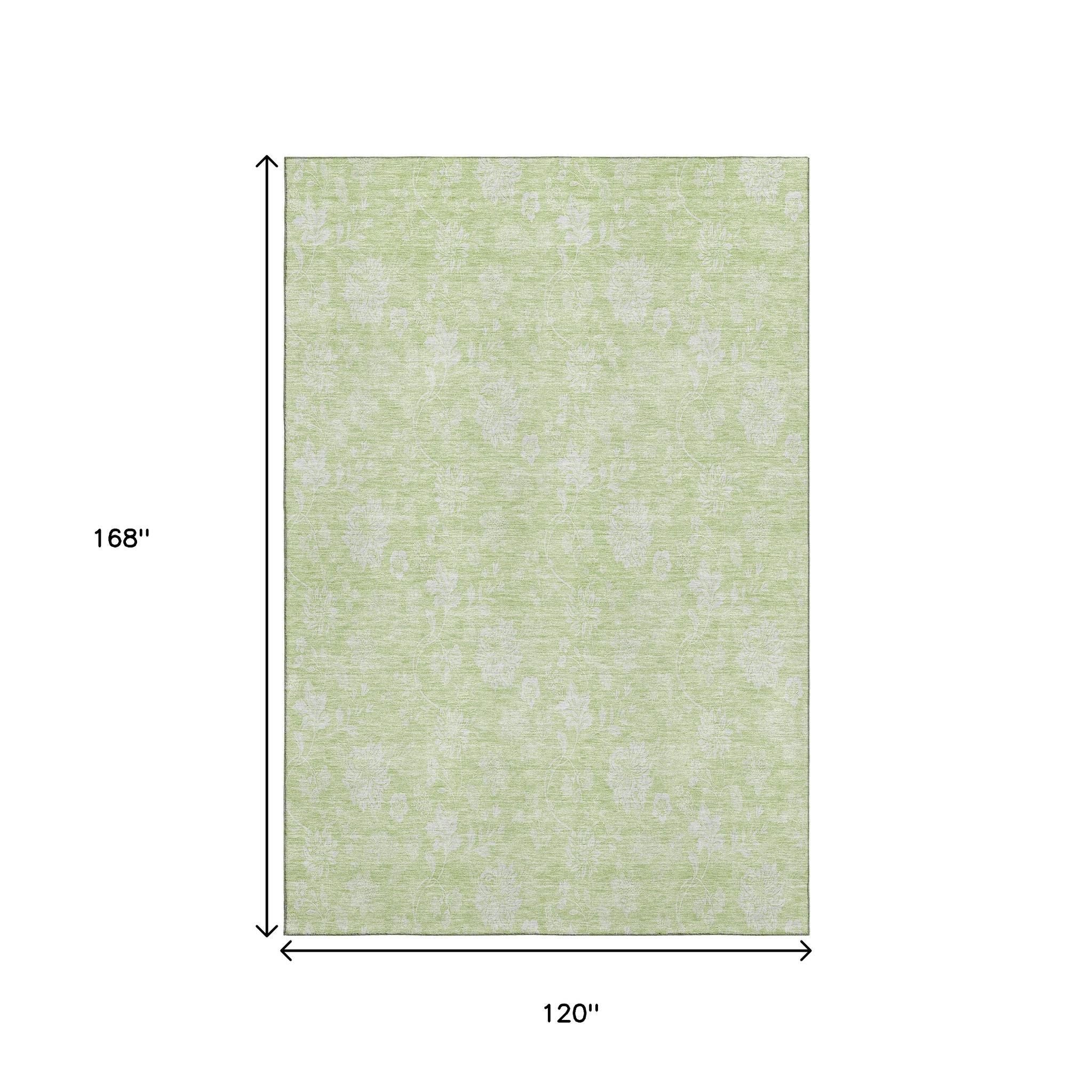 10' X 14' Artichoke Green And Ivory Floral Washable Area Rug With UV Protection