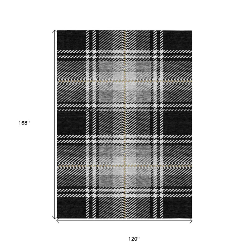 10' X 14' Black Gold And Gray Plaid Washable Indoor Outdoor Area Rug