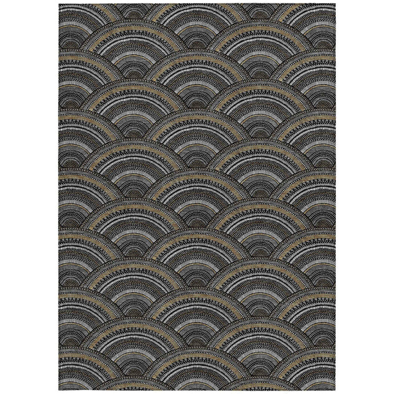 This 10-foot x 14-foot black ivory and gold geometric washable indoor outdoor area rug, is a great way to add warmth to a room. This rectangle shaped rug features a geometric design that will work well both indoors or out. A classic shape marries with good looking design for your living room, hall, bedroom, porch, patio, or poolside. Ideal for outdoor spaces or high traffic areas with kids and pets, this rug is made from heavy duty polyester that is stain resistant to help repel water, dirt, and stains. Makes a great way to dress up your patio, porch, or poolside, but also works well as a durable and easy to maintain option in the kitchen, family room, or mudroom. 120-inch h x 168-inch w x 0.19-inch d.