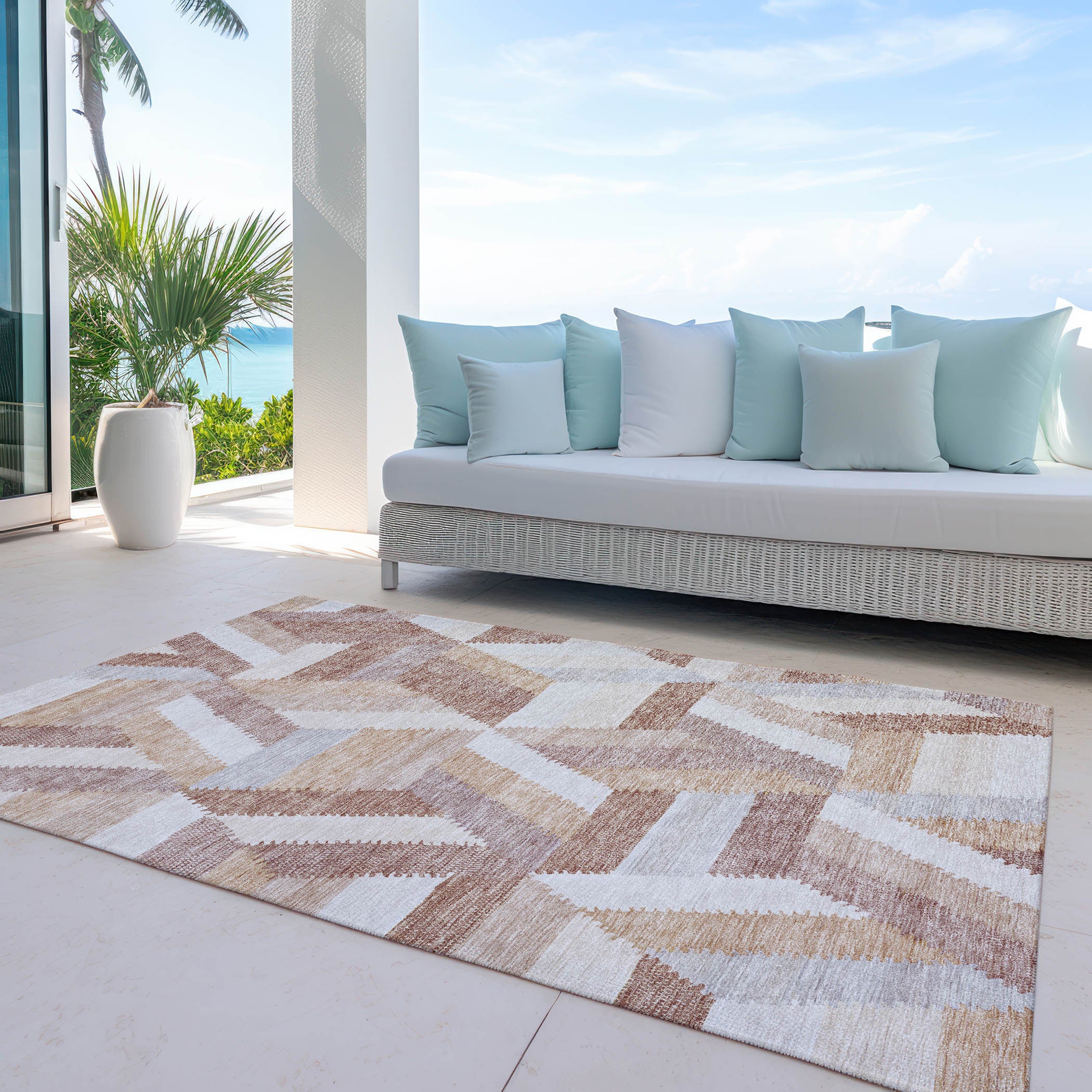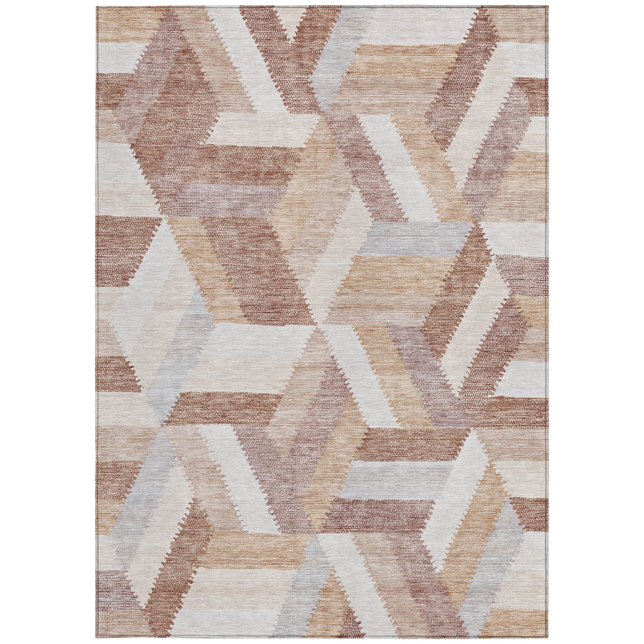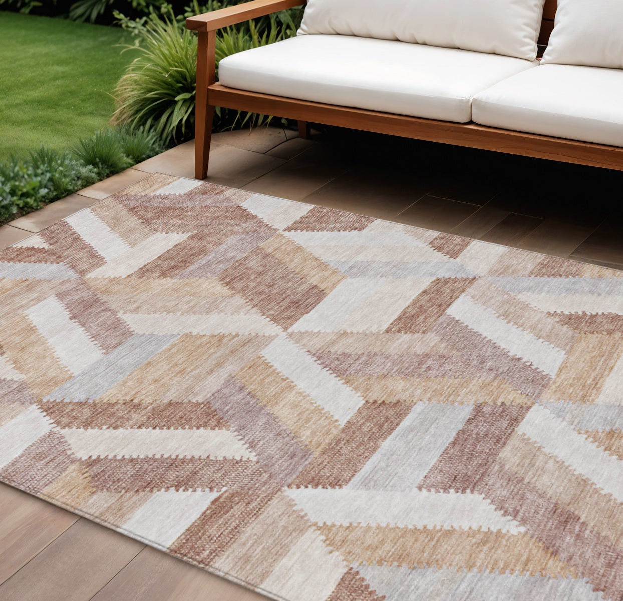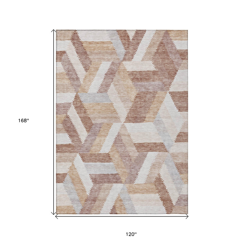 10' X 14' Copper Geometric Washable Indoor Outdoor Area Rug