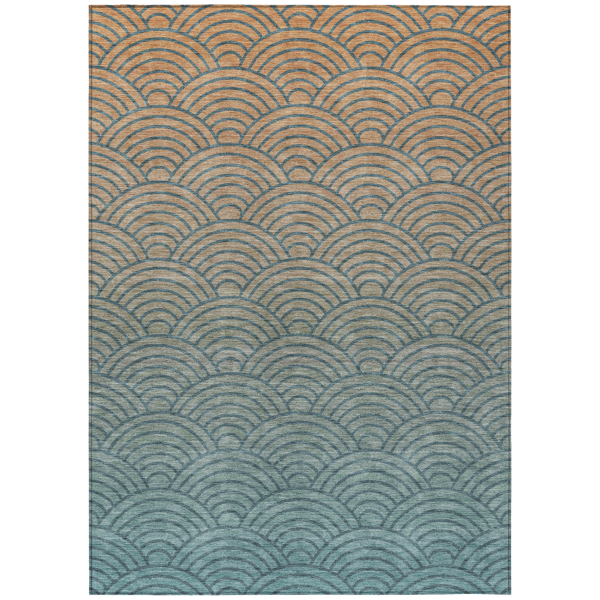 Add some artistry to your room with this 10-foot x 14-foot teal blue and orange geometric washable indoor outdoor area rug. This rectangle shaped rug features a geometric design that will work well both indoors or out. A classic shape marries with good looking design for your living room, hall, bedroom, porch, patio, or poolside. Ideal for outdoor spaces or high traffic areas with kids and pets, this rug is made from heavy duty polyester that is stain resistant to help repel water, dirt, and stains. Makes a great way to dress up your patio, porch, or poolside, but also works well as a durable and easy to maintain option in the kitchen, family room, or mudroom. 120.00-inch h x 168.00-inch w x 0.19-inch d.