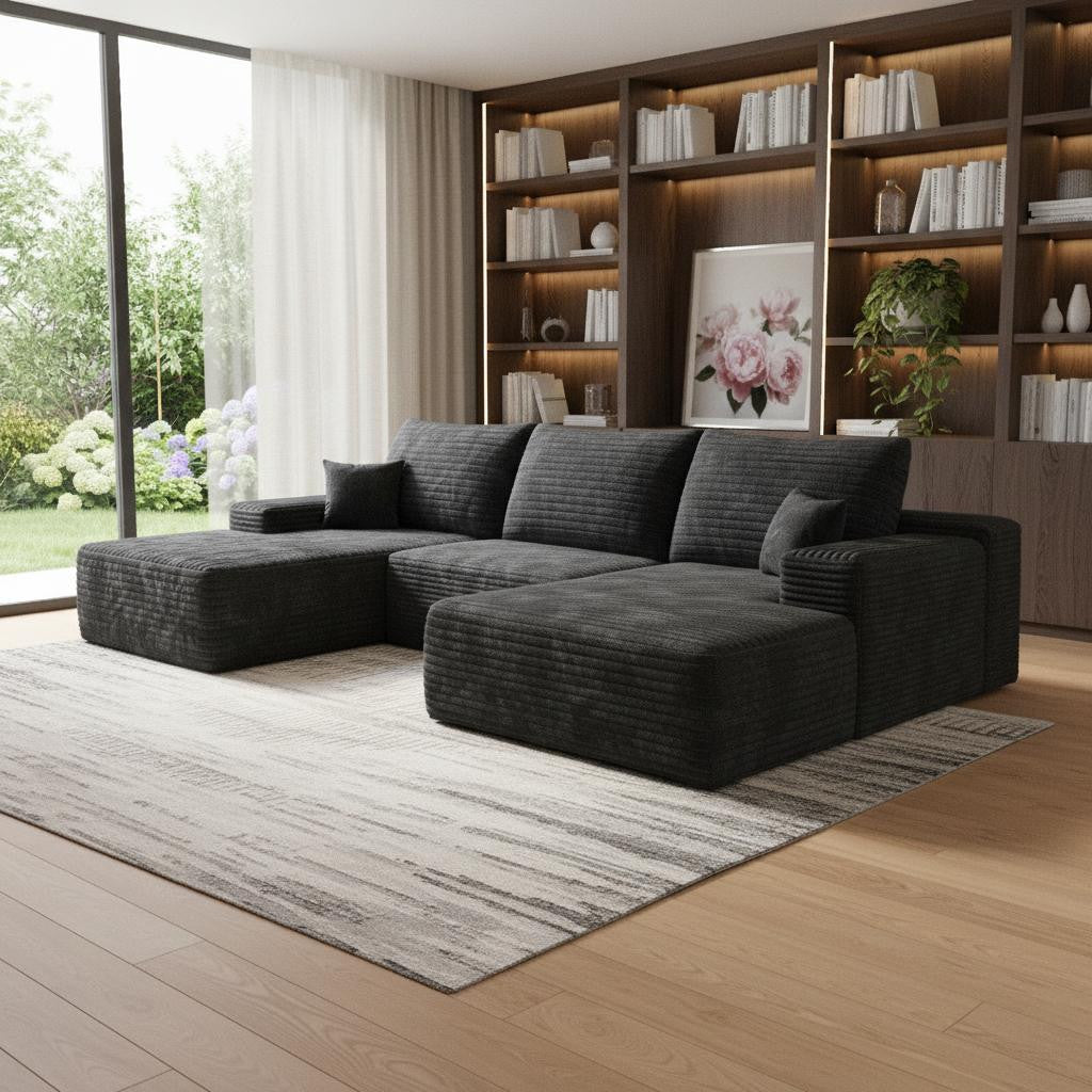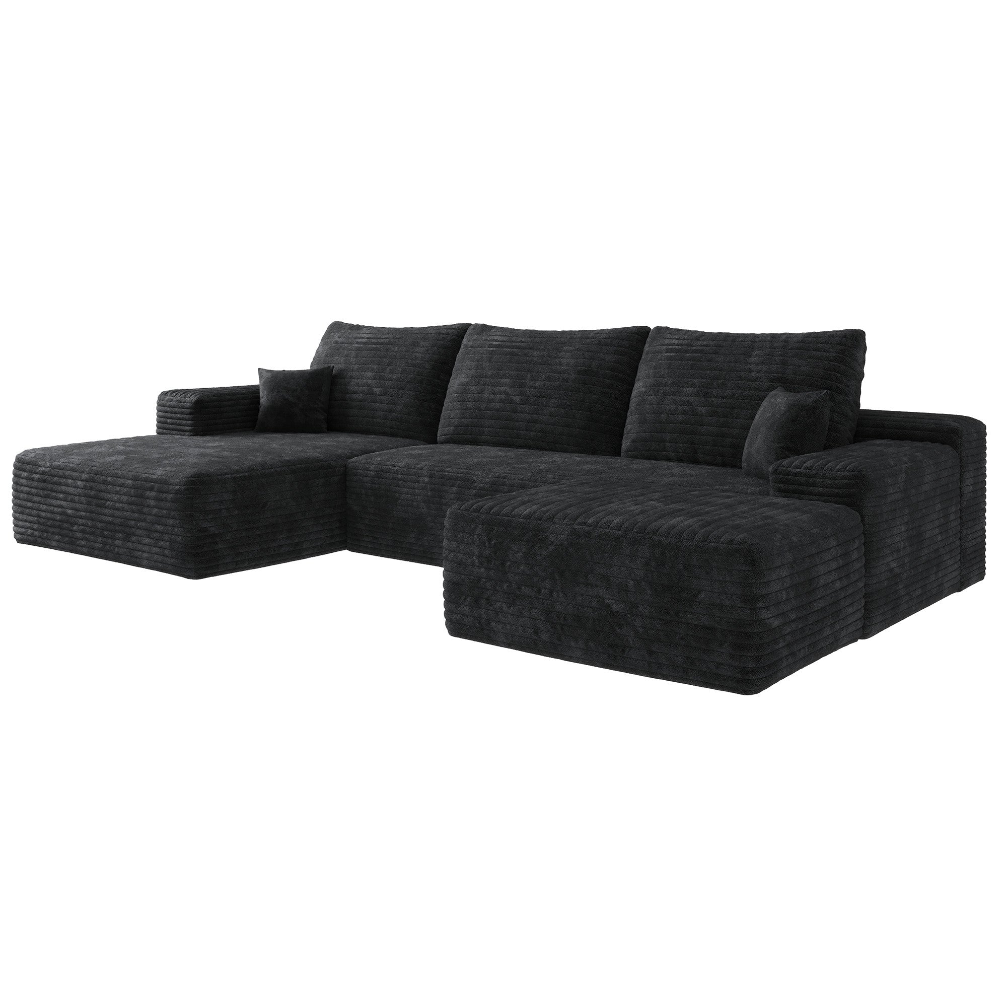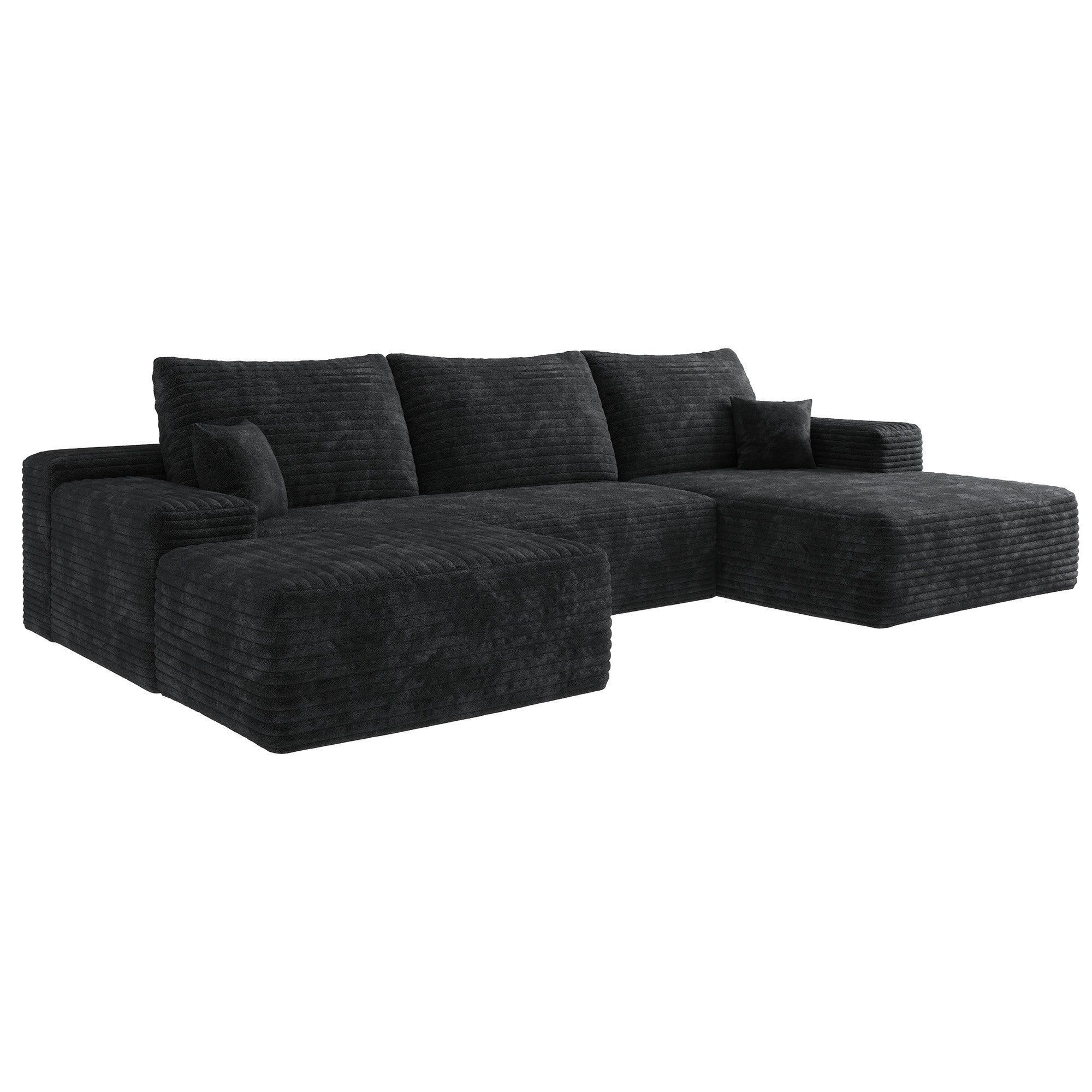 135" Black Corduroy Modular Compression Foam Sofa With Ottoman And Toss Pillows Passer au contenu
