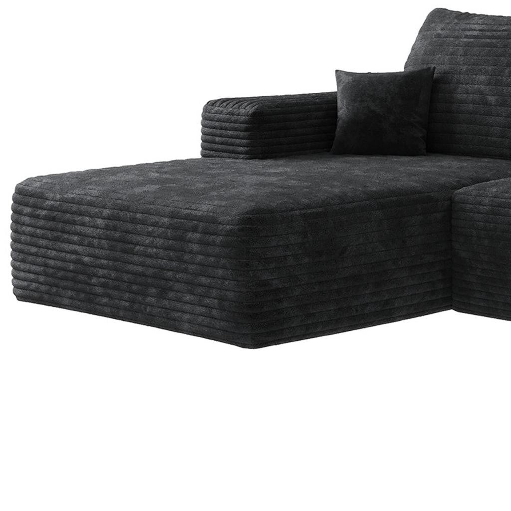 135" Black Corduroy Modular Compression Foam Sofa With Ottoman And Toss Pillows