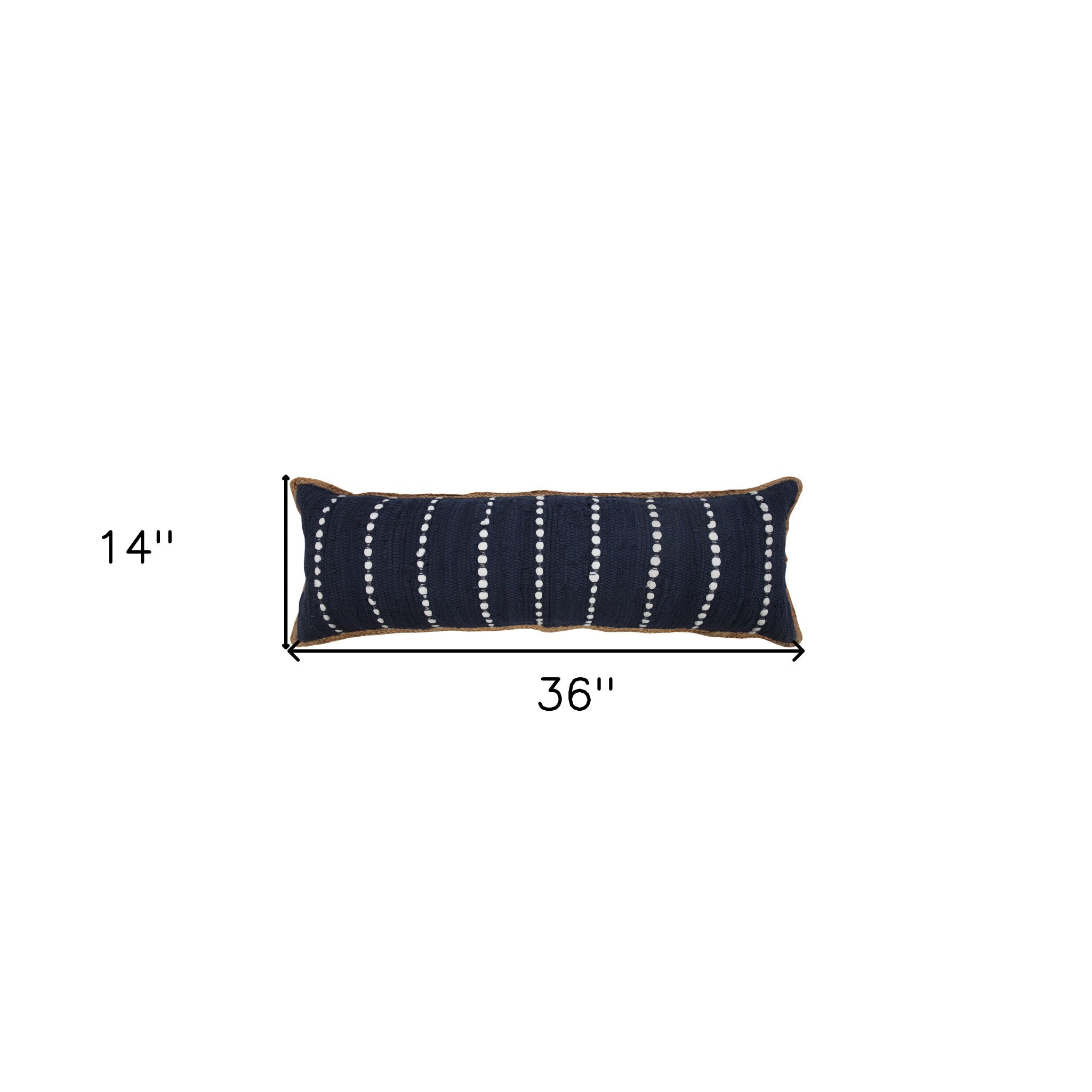 14" X 36" Blue and Beige Striped Cotton Blend Zippered Pillow