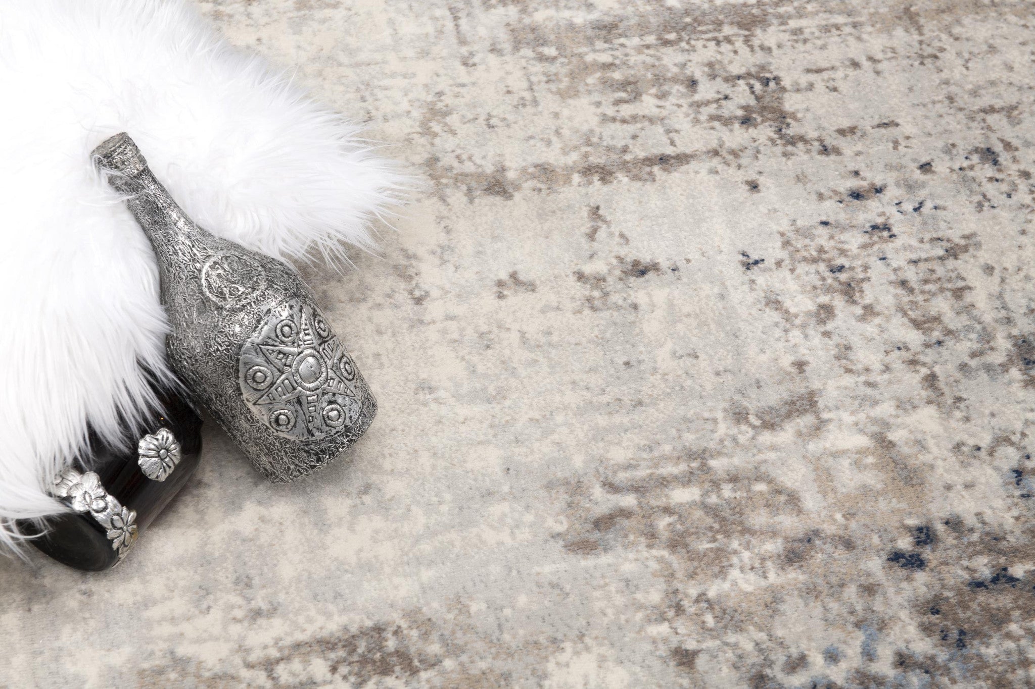 The visually intriguing abstract patterns in a subtle color palette make this Navy Blue Distressed Striations Area Rug a perfect pick to add an artistic appeal to your living space. Giving off a weathered impression with its skillful use of navy blue and beige hues on an ivory base to accentuate the aesthetics of antique pieces. Made in Turkey with 100% inherently durable and stain-resistant polypropylene fibers to stand up the elements of high traffic indoor areas while ensuring its strength and sheen for years to come. The high and dense pile construction not only adds to its surface interest but also offers a soft and cozy layer under the feet to experience utmost comfort as you step on this piece. The neutral hues of this area rug make it not only a cornerstone for contemporary styling but also a versatile accent to suit any interior theme. 72” x 27” x 0.4”