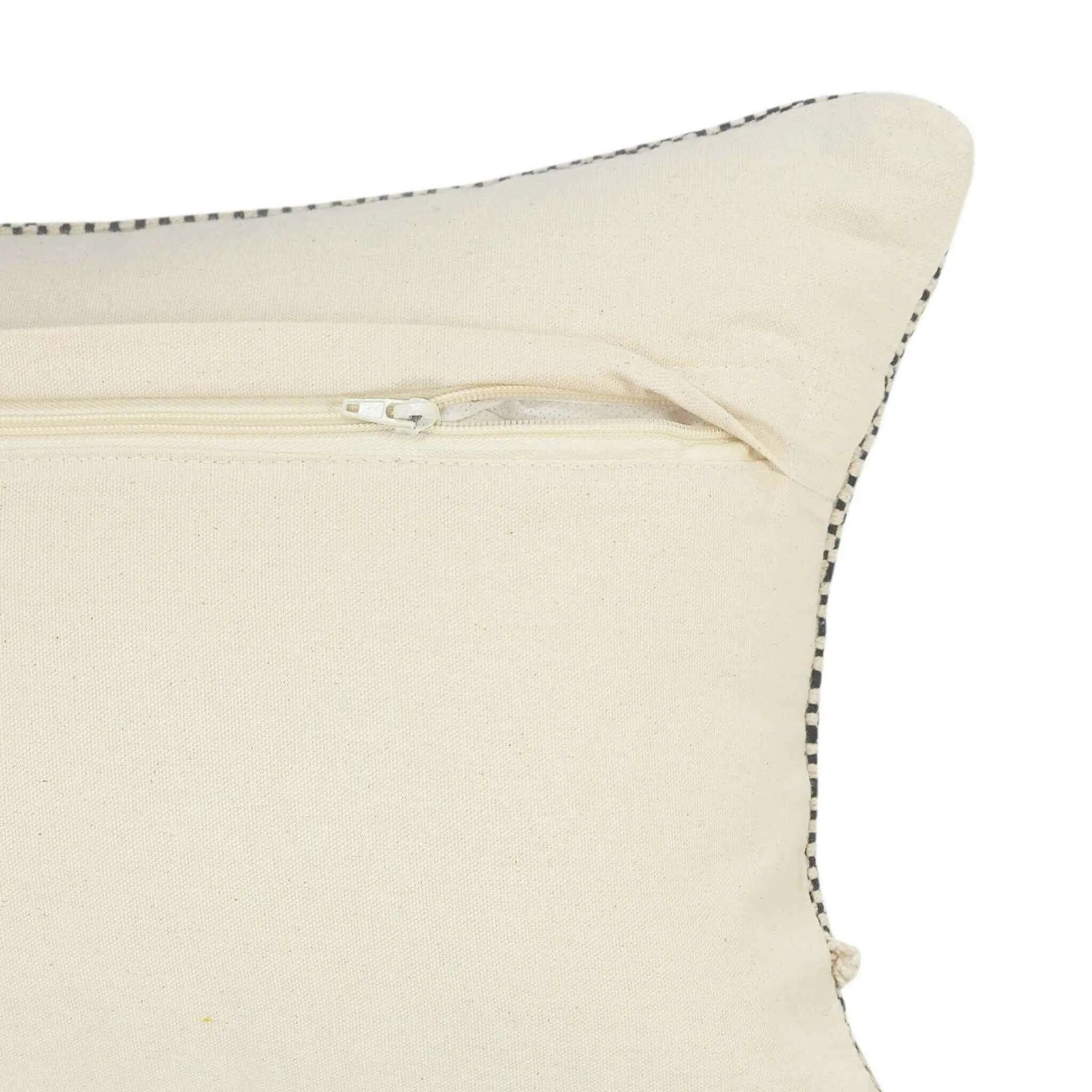 The 20" x 20" black and off-white 100% cotton geometric zippered pillow is the perfect decorative accessory for your home. Soft and textural black and off-white 100% cotton has been used to make this pillow look and feel like a real treasure. Decorative throw pillows not only add color and dimension to your space but can be comfy and supportive when you are lounging and cuddling as well. A great decorative accessory for your favorite chair, to accent your sofa, or to use as part of your bed ensemble. 4" H x 20" W x 20" D