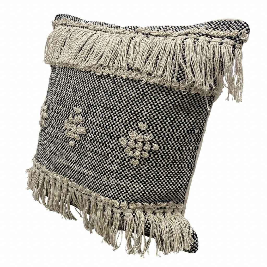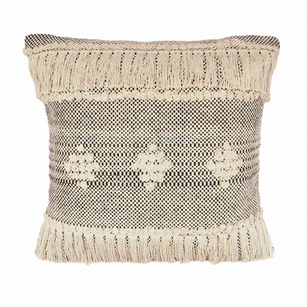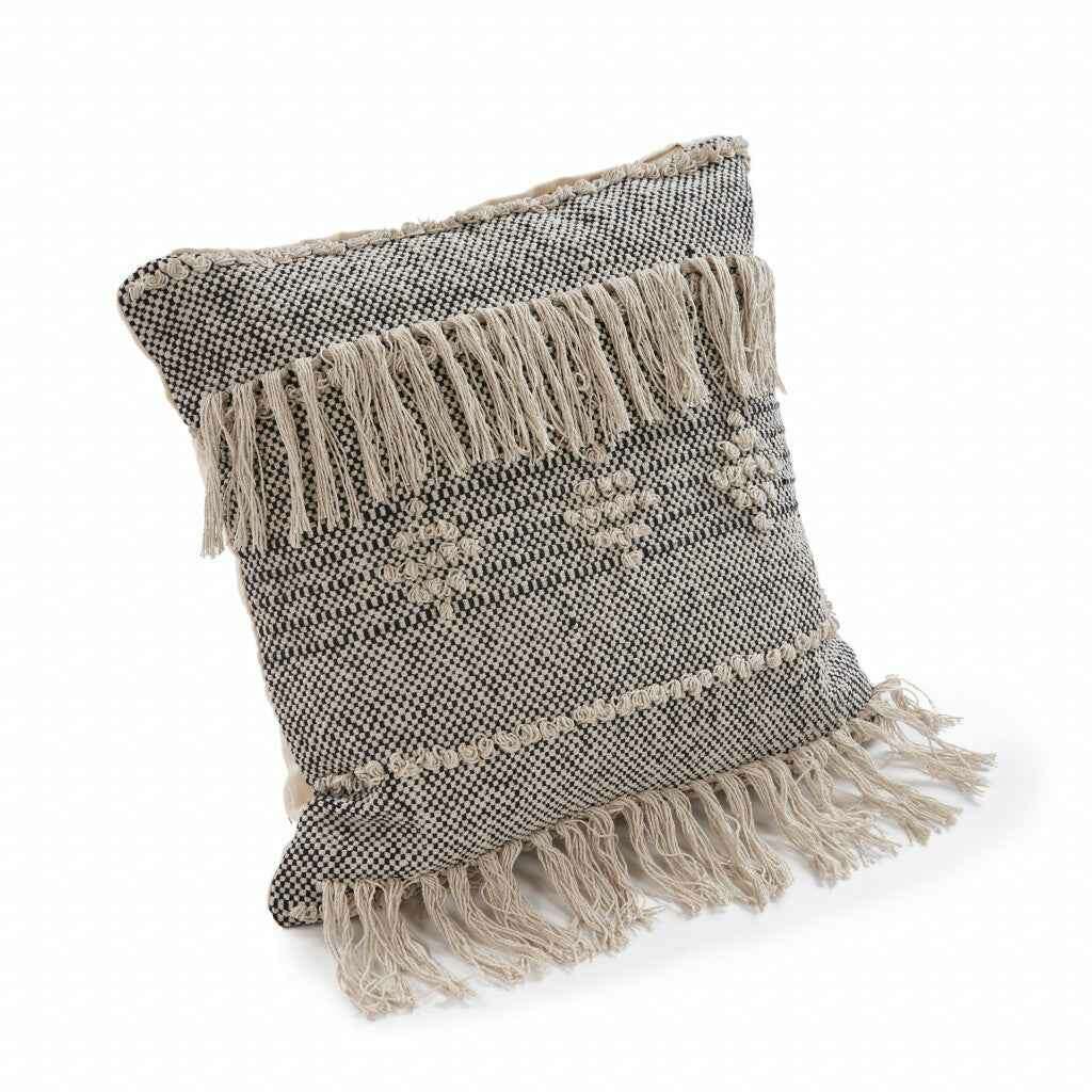 20" X 20" Black And Off-White 100% Cotton Geometric Zippered Pillow