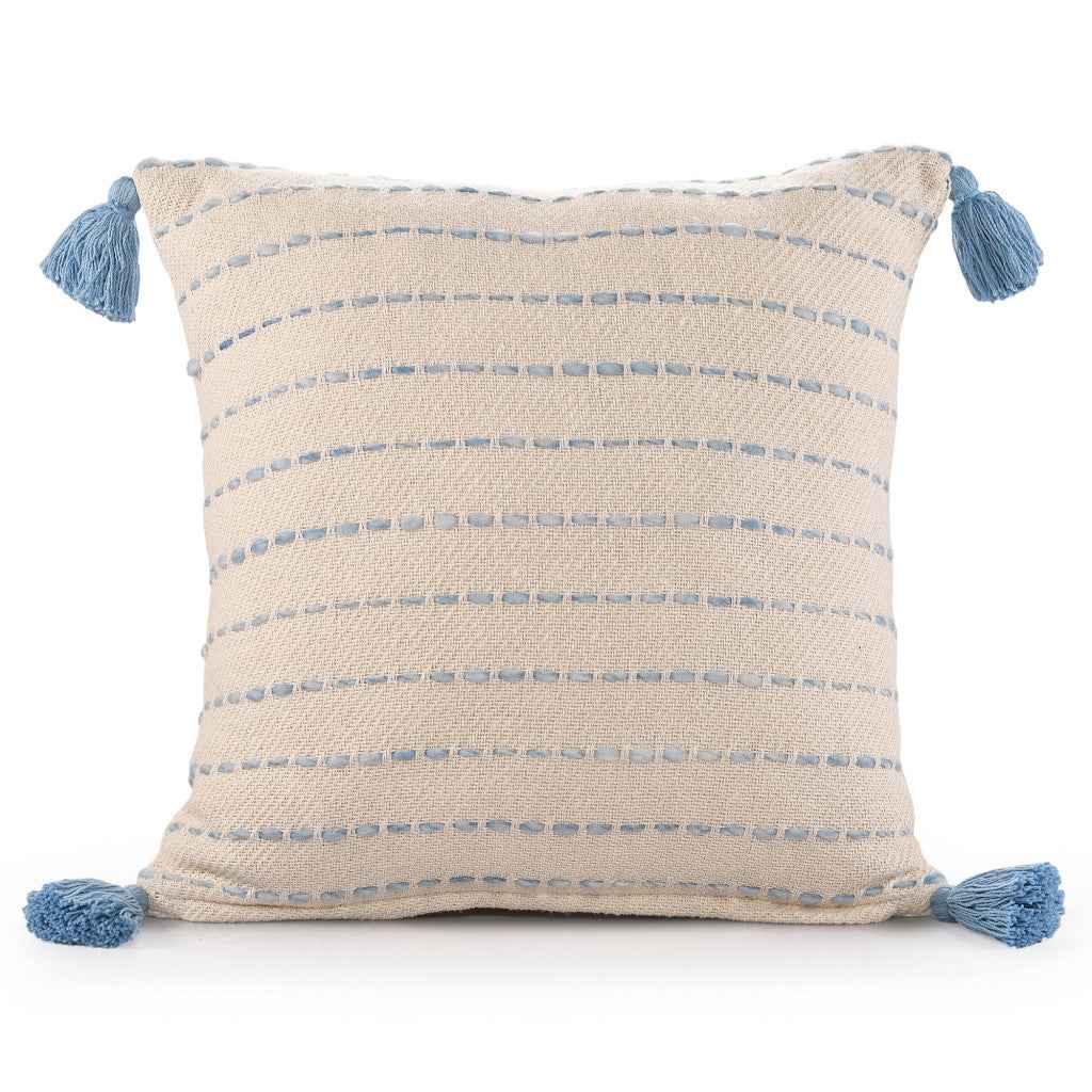 20" X 20" Denim Blue And Ivory 100% Cotton Striped Zippered Pillow