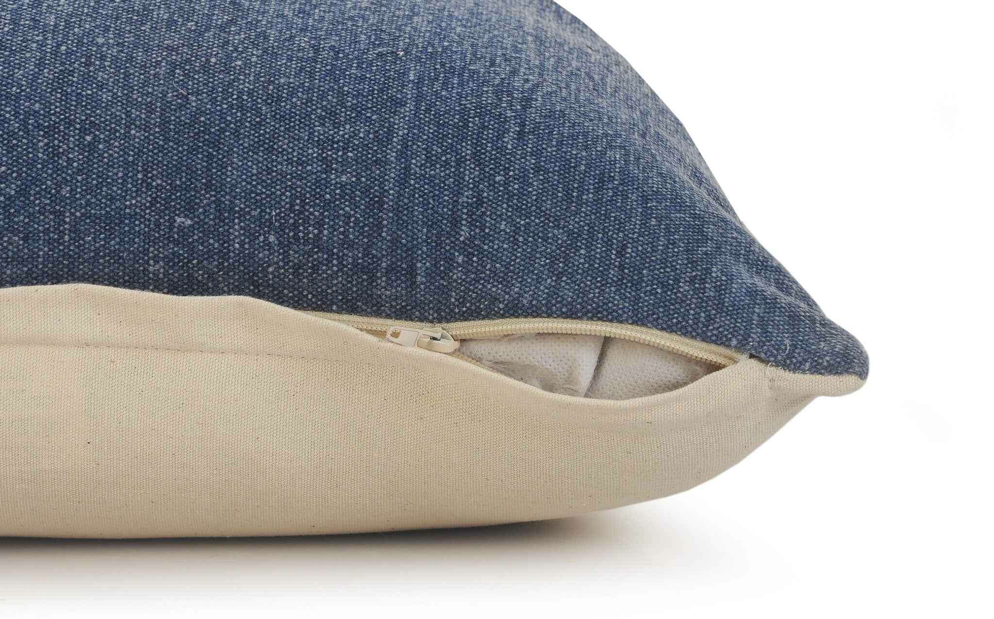 Unique and decorative, this comfortable 20" x 20" dusty blue and white 100% cotton striped zippered pillow will leave a lasting impression. This super soft decorative pillow is expertly made of high grade, long lasting 100% cotton in a dusty blue and white coloration. Great to use on its own or mix with other decorations for the perfect look. A great decorative accessory for your favorite chair, to accent your sofa, or to use as part of your bed ensemble. 4" H x 20" W x 20" D