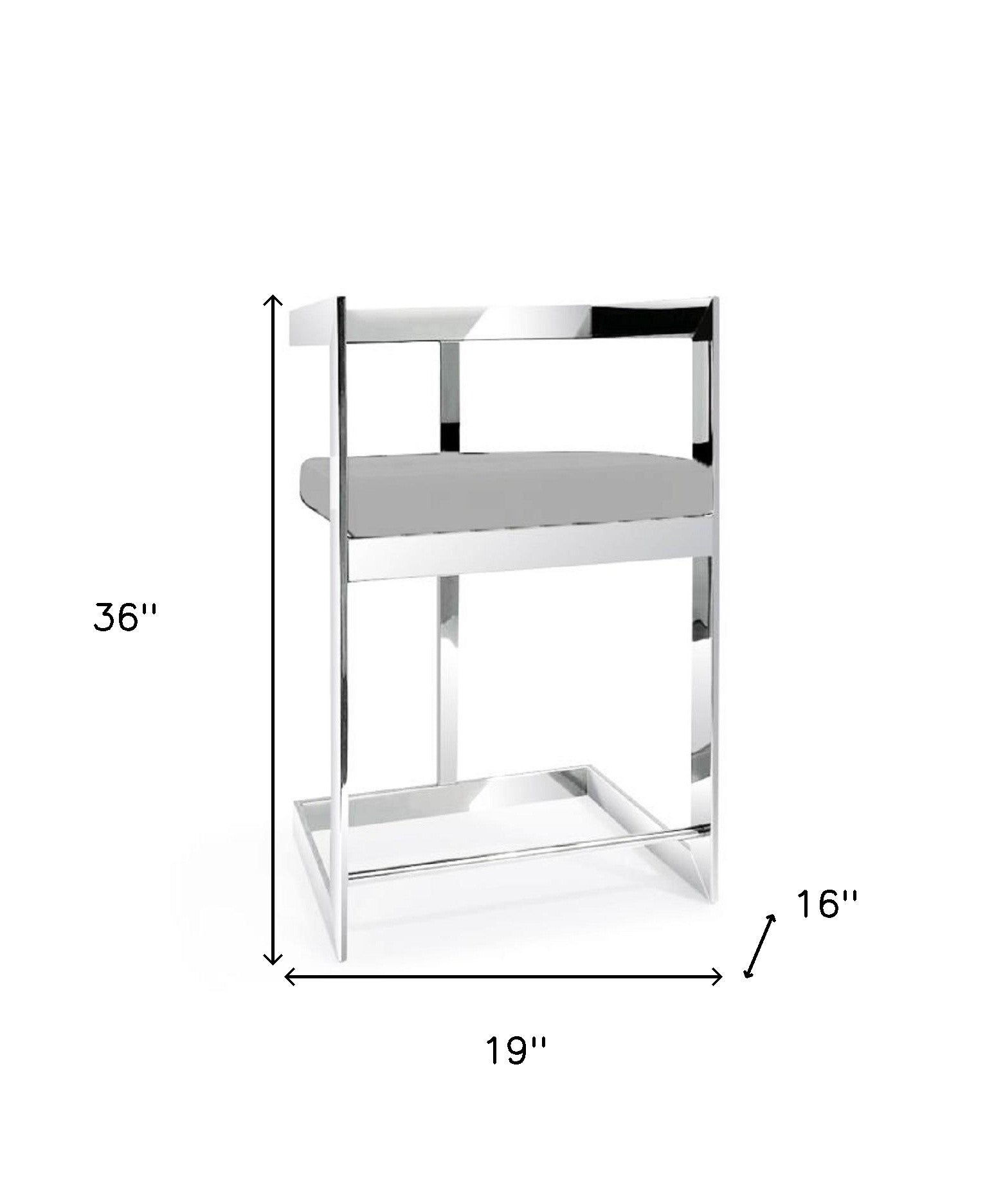 26" Gray and Silver Velvet and Stainless Steel Low Back Counter Height Bar Chair
