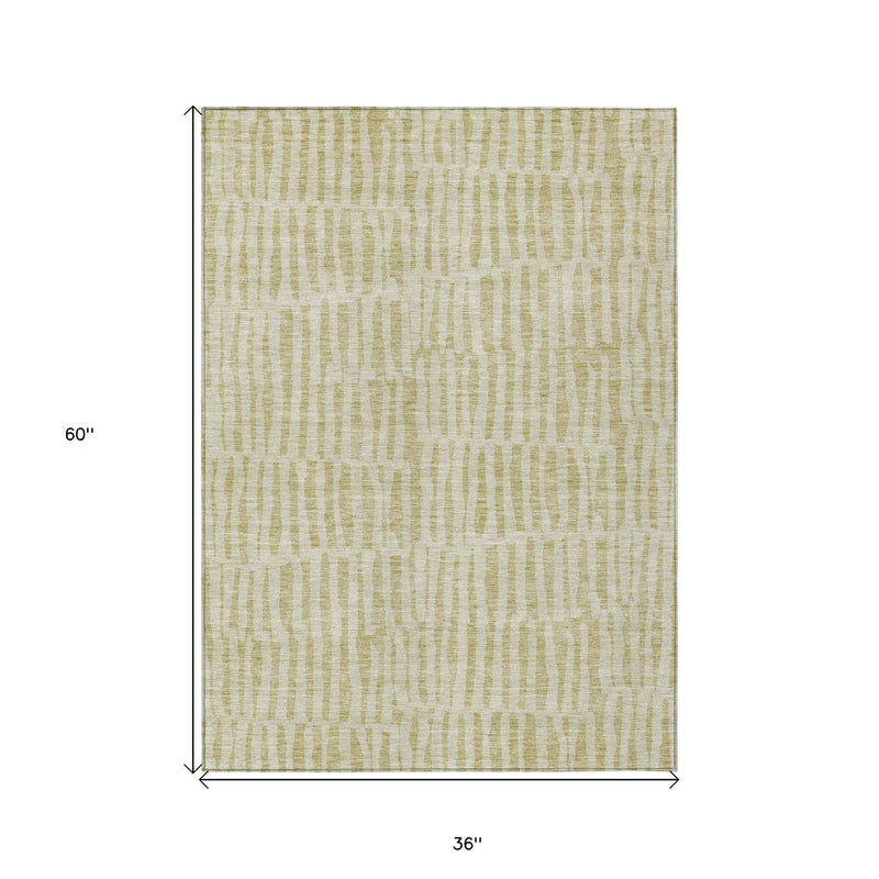 3' X 5' Beige And Tan Striped Washable Indoor Outdoor Area Rug
