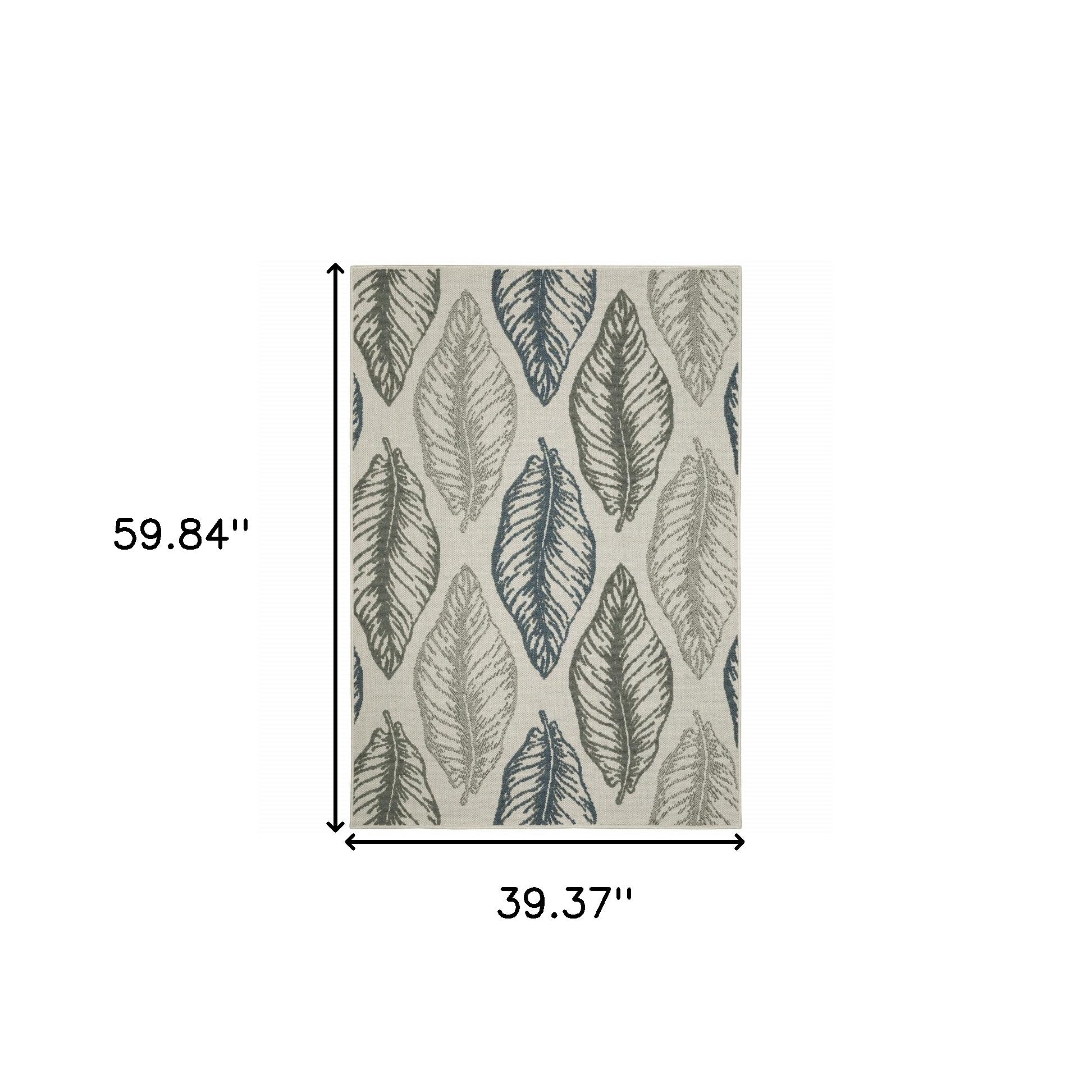 3' X 5' Beige Floral Stain Resistant Indoor Outdoor Area Rug Passer au contenu