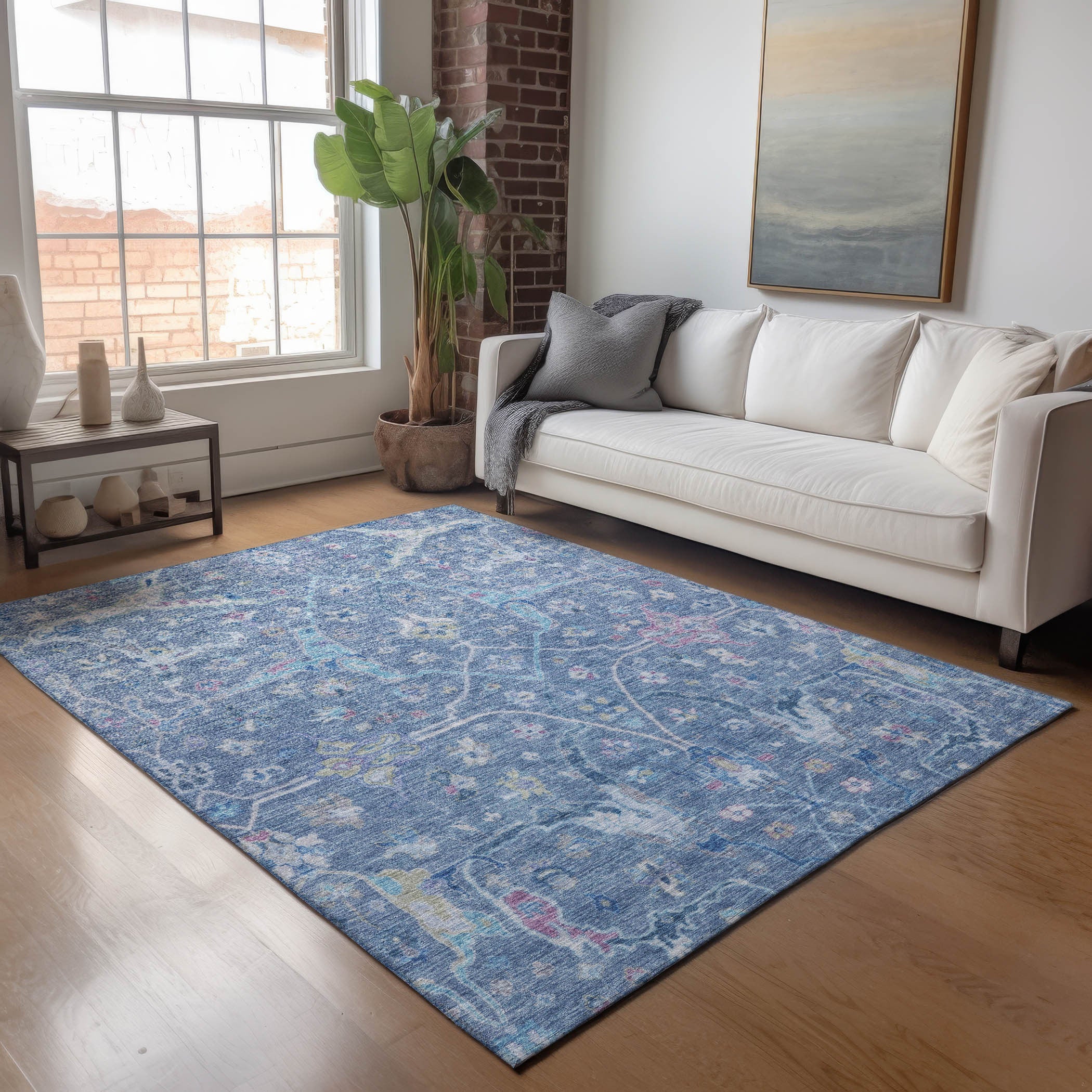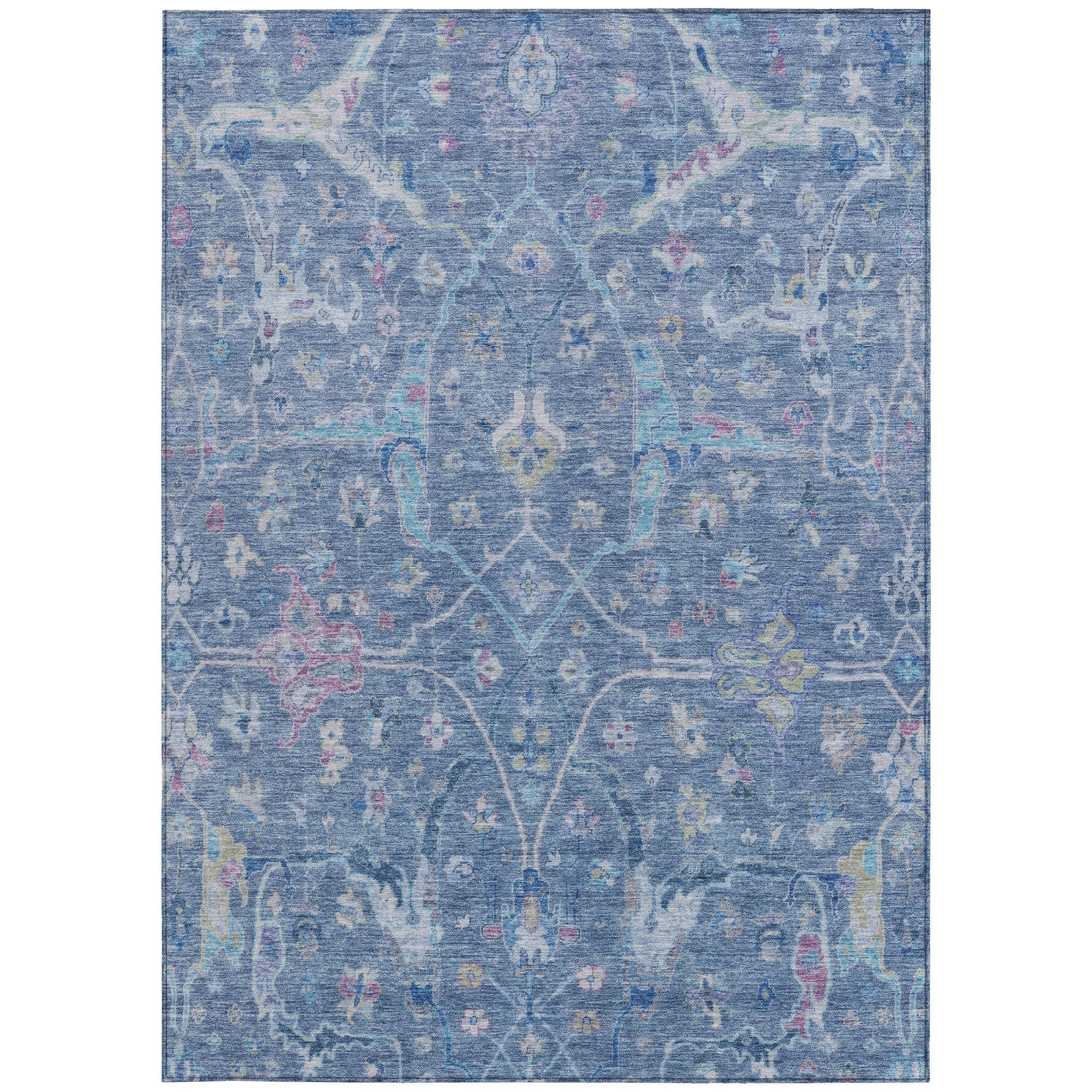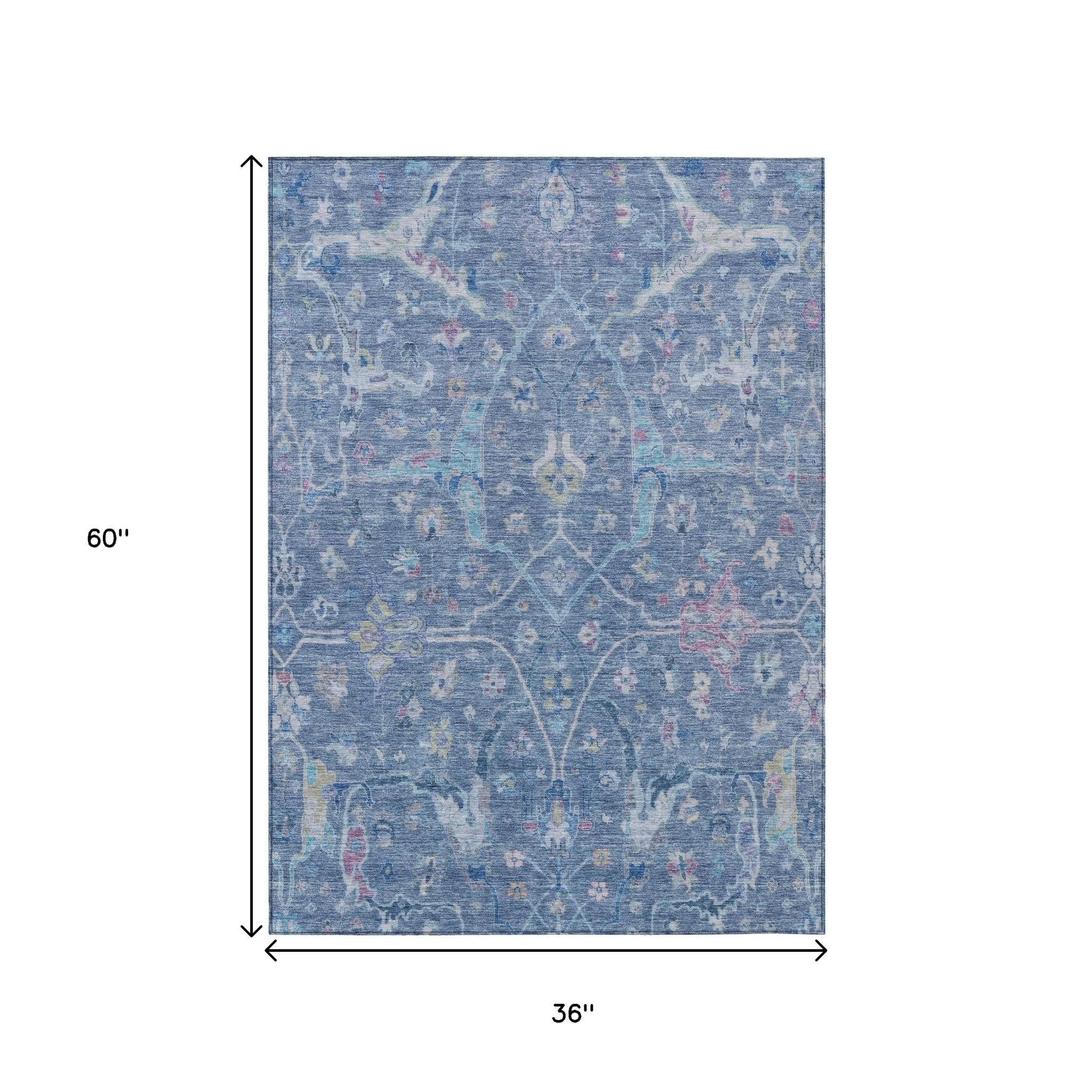 3' X 5' Blue Sky Blue And Ivory Floral Washable Indoor Outdoor Area Rug
