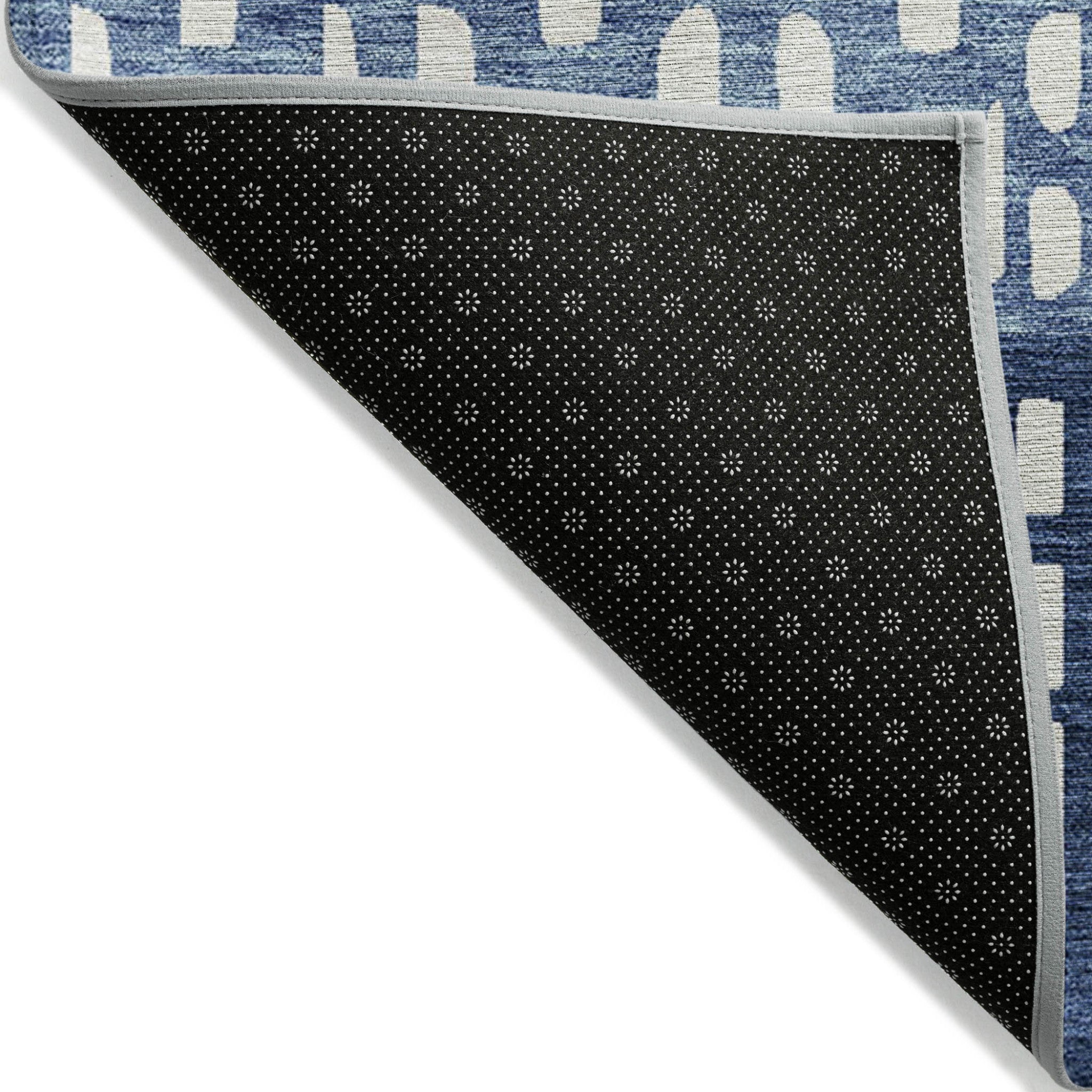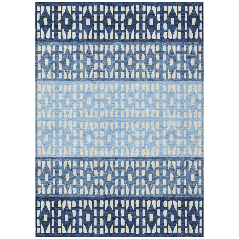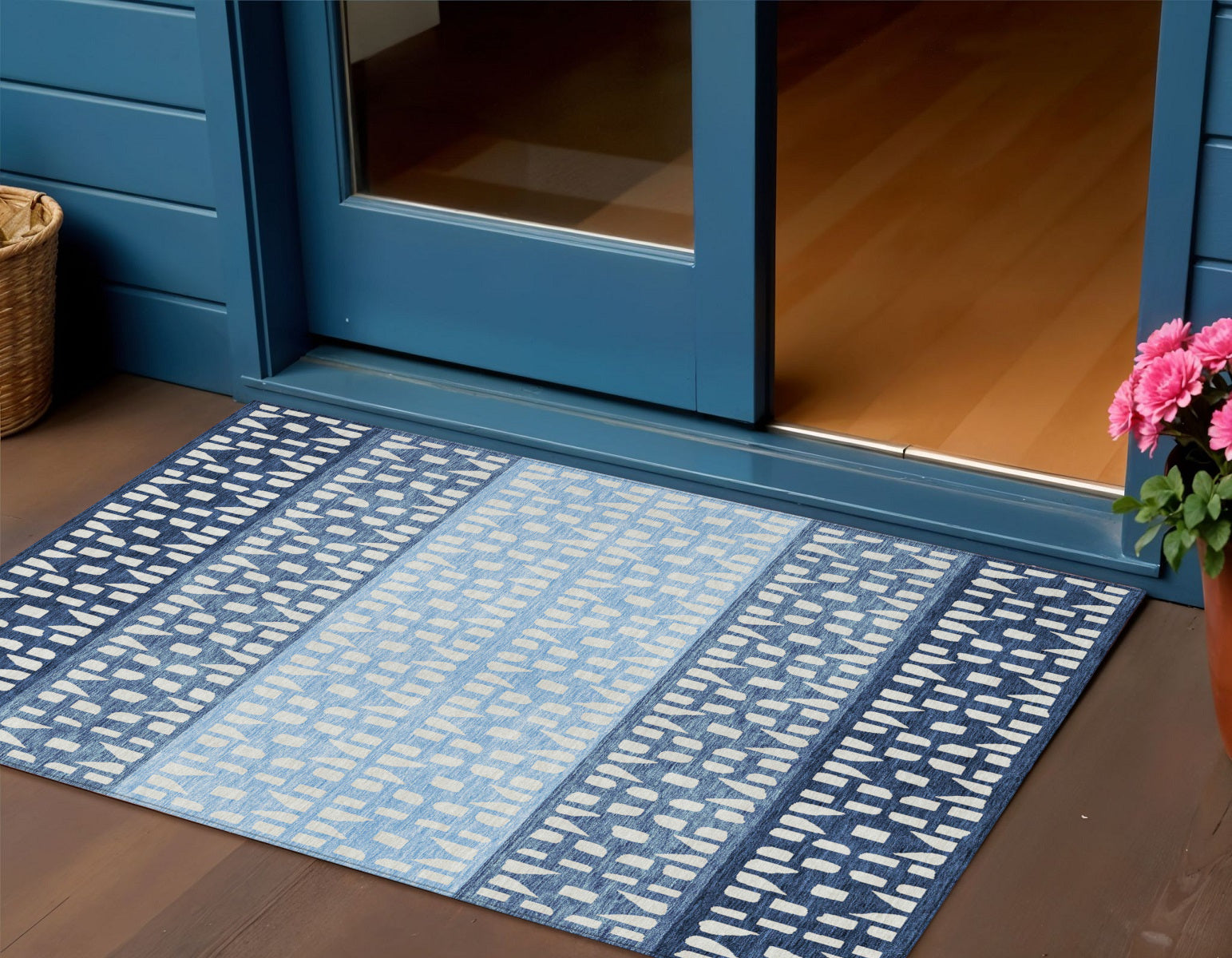 3' X 5' Blue Sky Blue And Ivory Geometric Washable Indoor Outdoor Area Rug