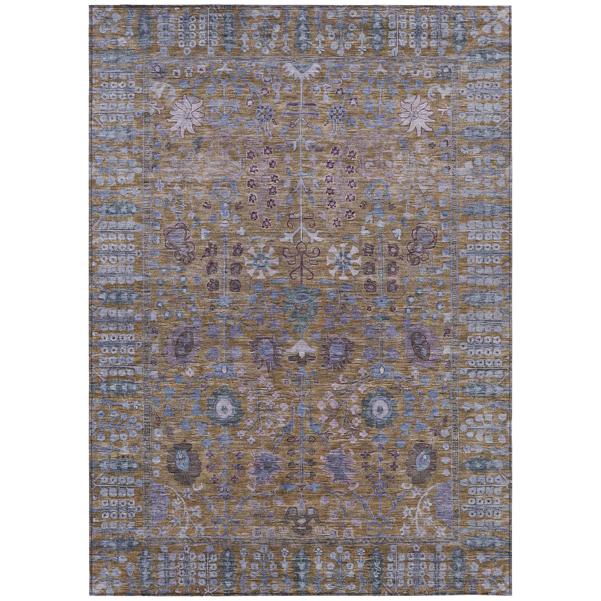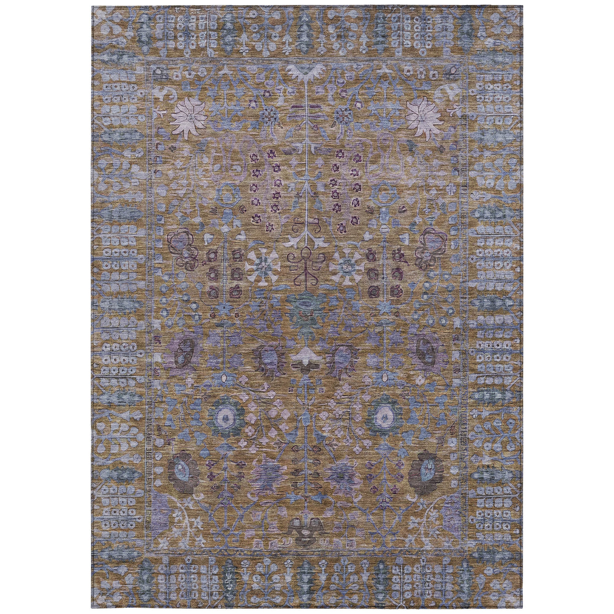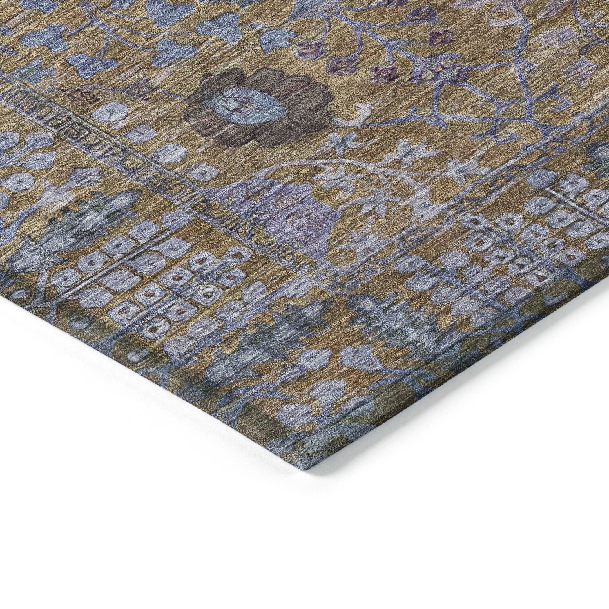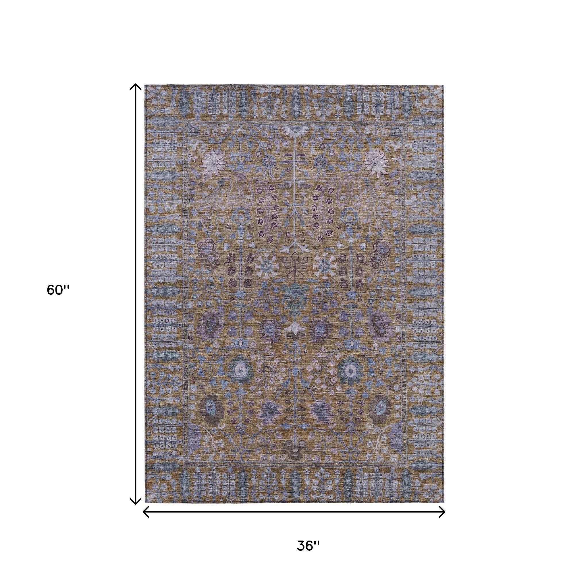 3' X 5' Brown And Blue Floral Washable Indoor Outdoor Area Rug
