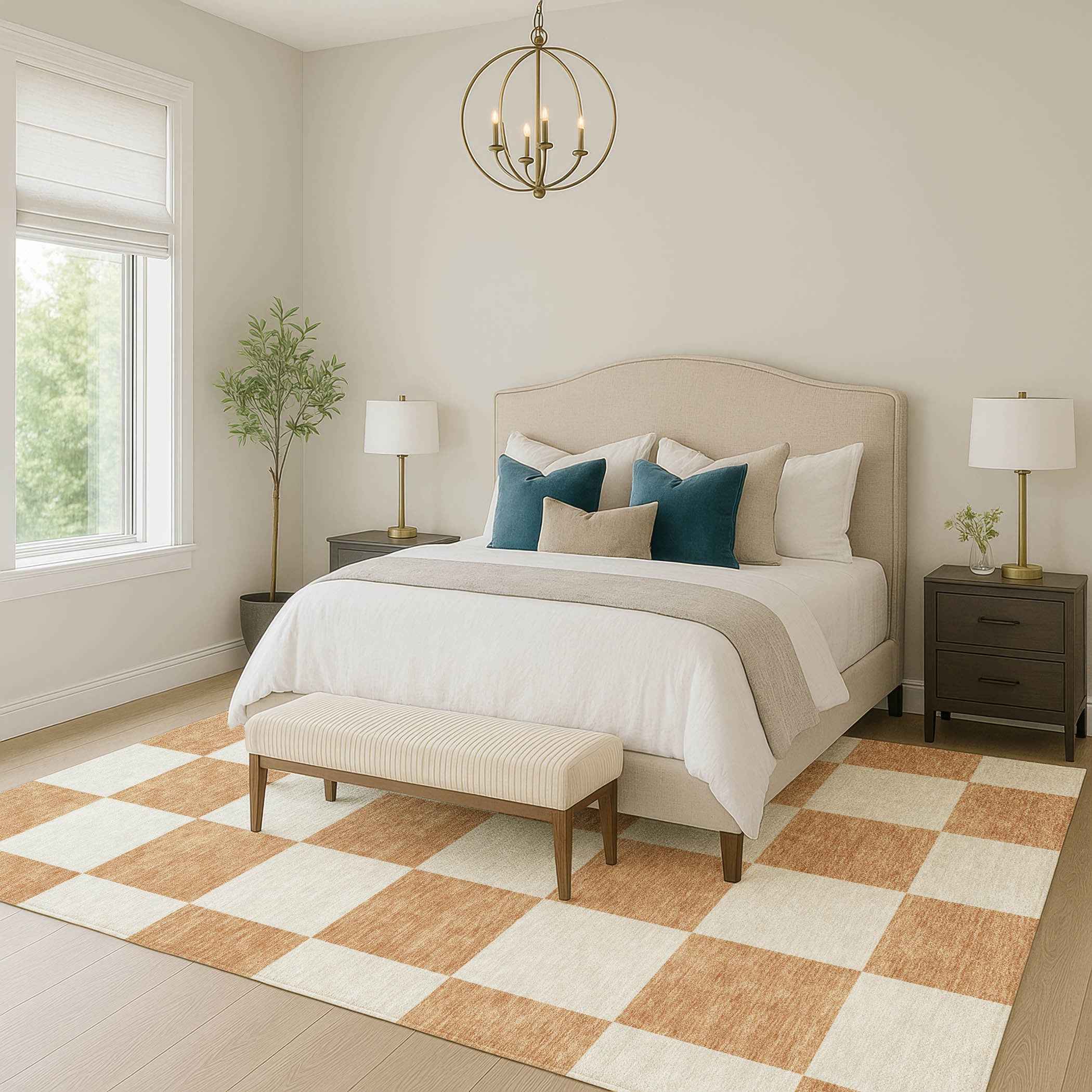 3' X 5' Copper And Ivory Geometric Washable Indoor Outdoor Area Rug