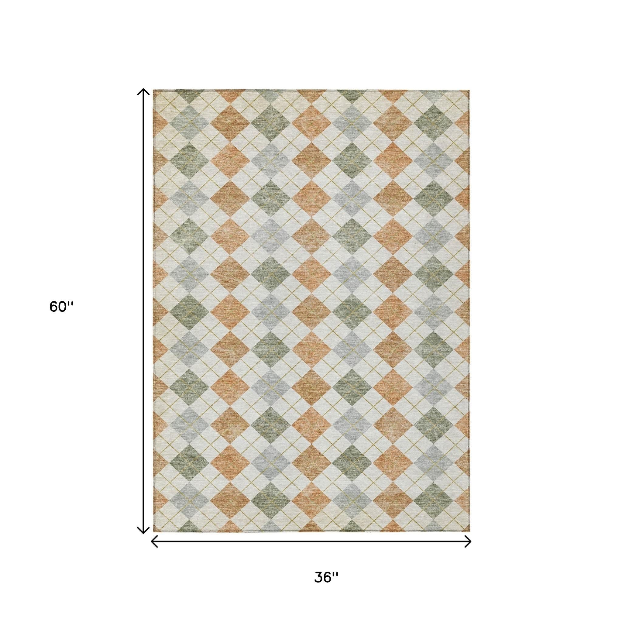 3' X 5' Coral Ivory And Silver Geometric Washable Indoor Outdoor Area Rug
