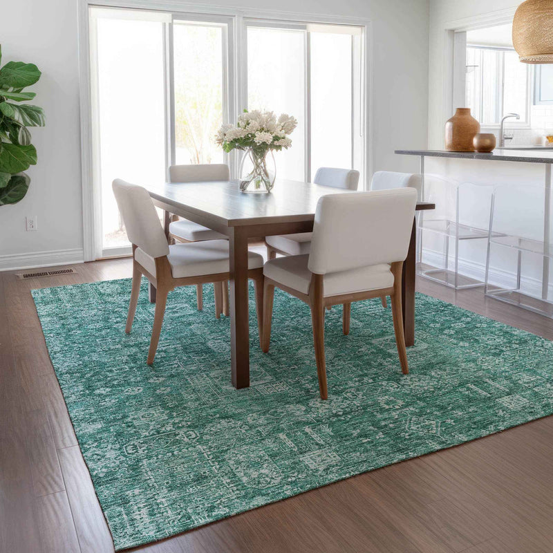 3' X 5' Dark Green And Aqua Oriental Washable Indoor Outdoor Area Rug