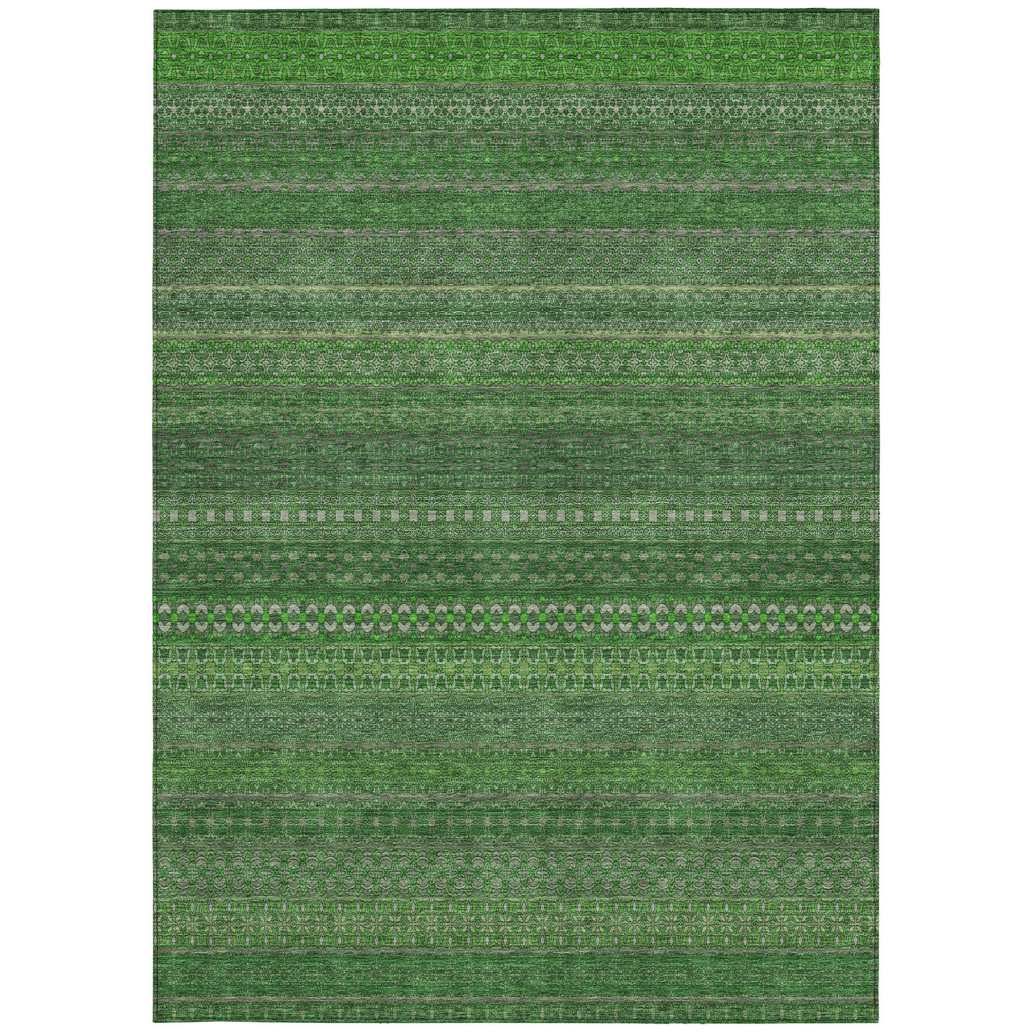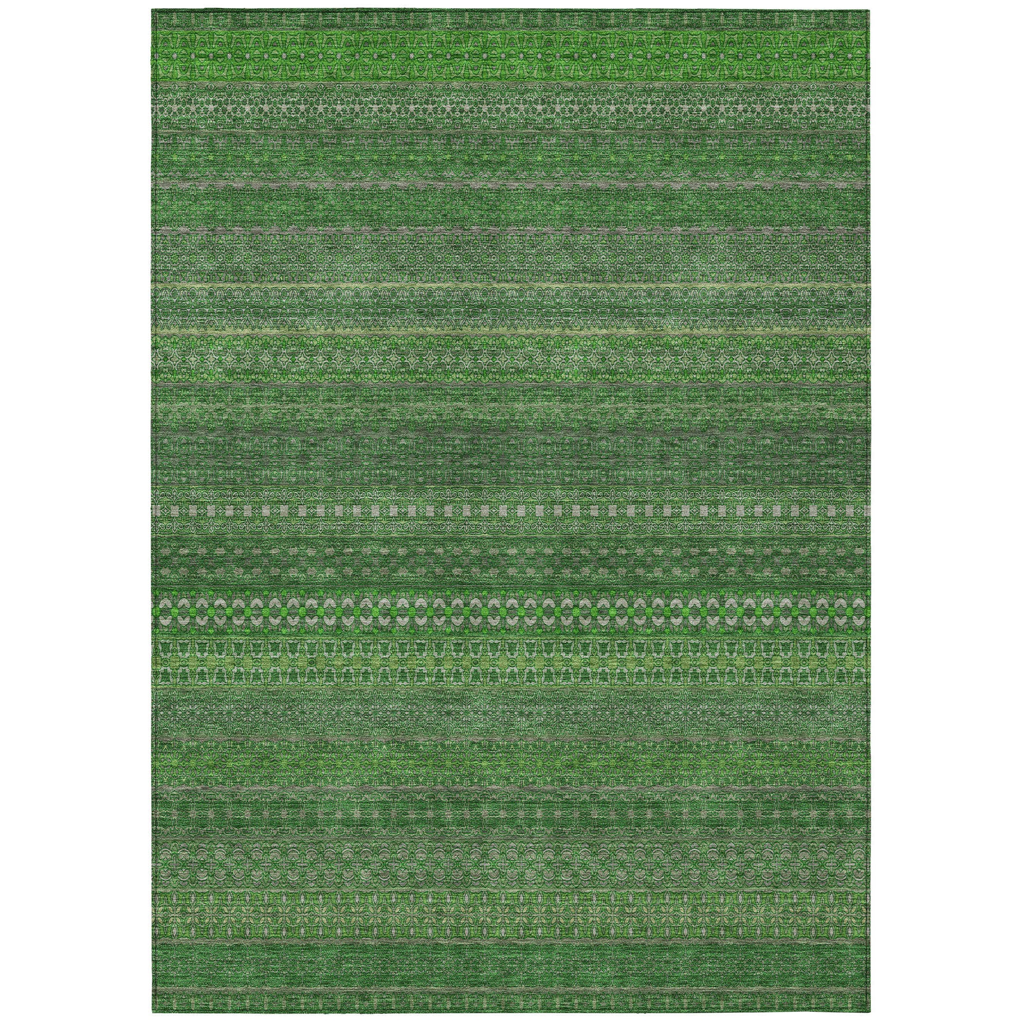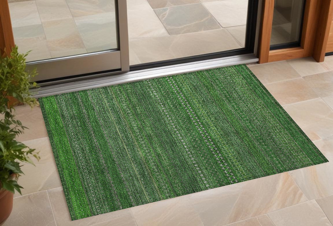 3' X 5' Fern Green Striped Washable Non Skid Indoor Outdoor Area Rug