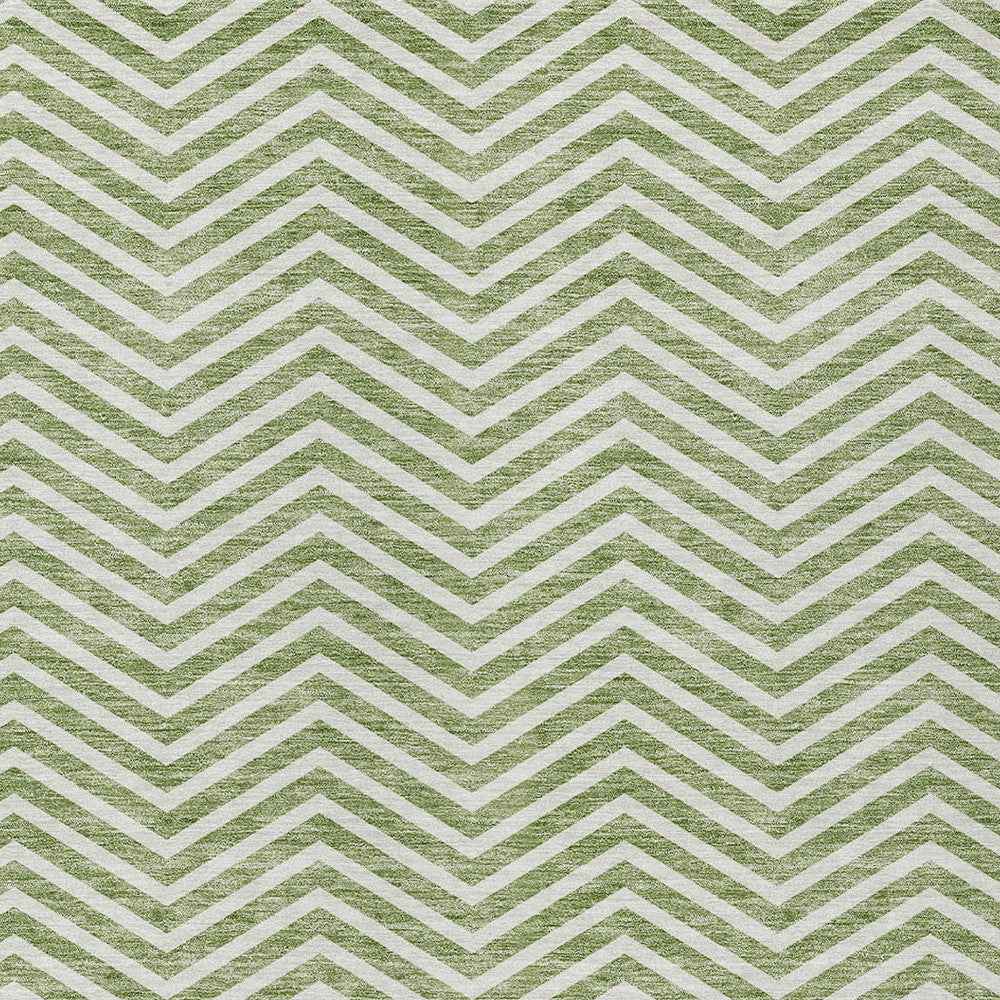 3' X 5' Green And Ivory Chevron Washable Indoor Outdoor Area Rug