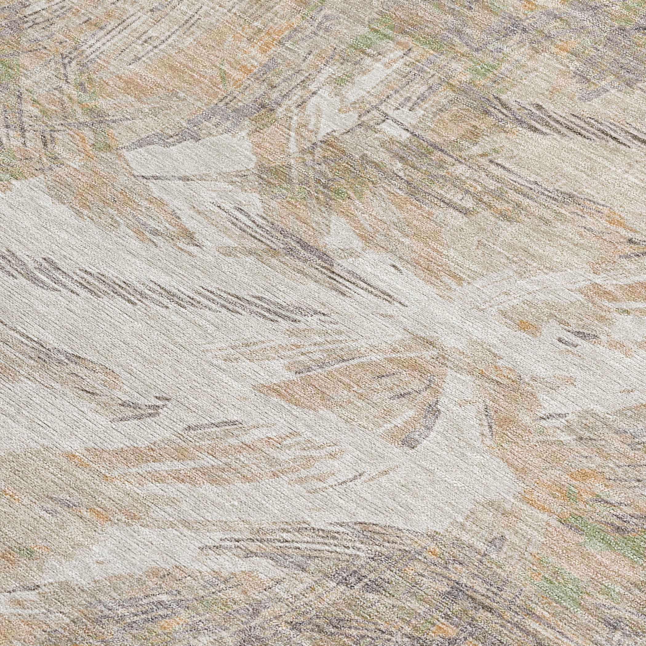 3' X 5' Khaki And Ivory Floral Washable Indoor Outdoor Area Rug