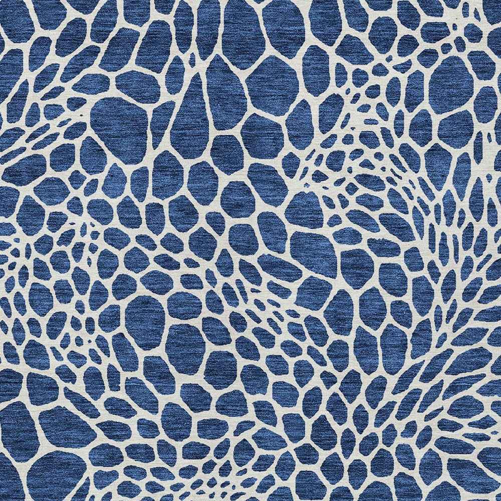 3' X 5' Navy Blue And Ivory Geometric Washable Indoor Outdoor Area Rug