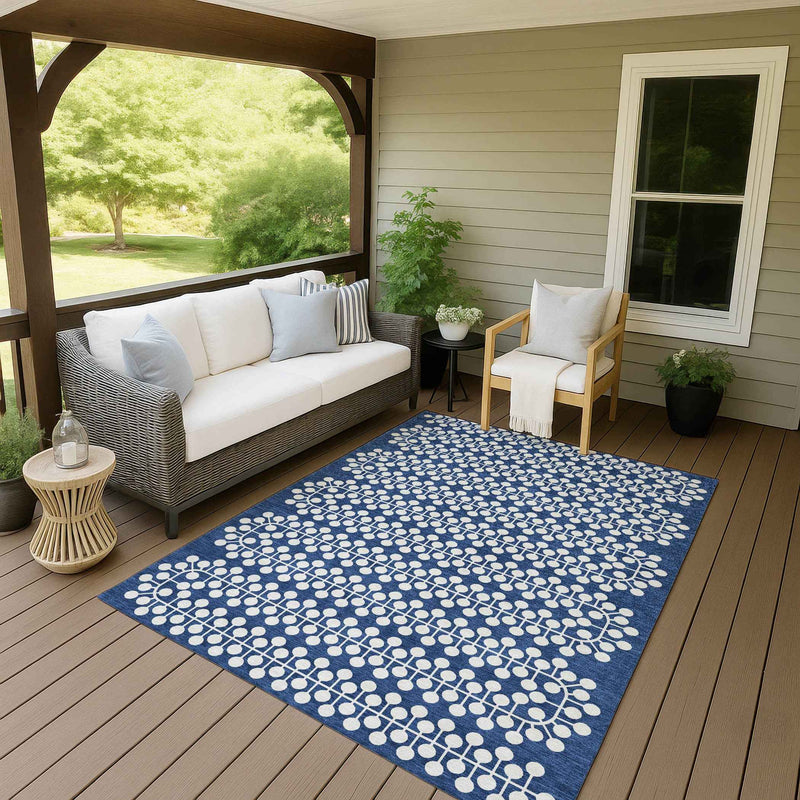 3' X 5' Navy Blue And Ivory Geometric Washable Indoor Outdoor Area Rug