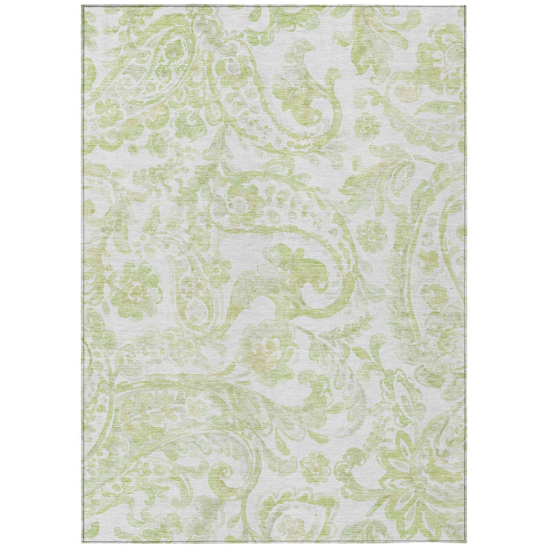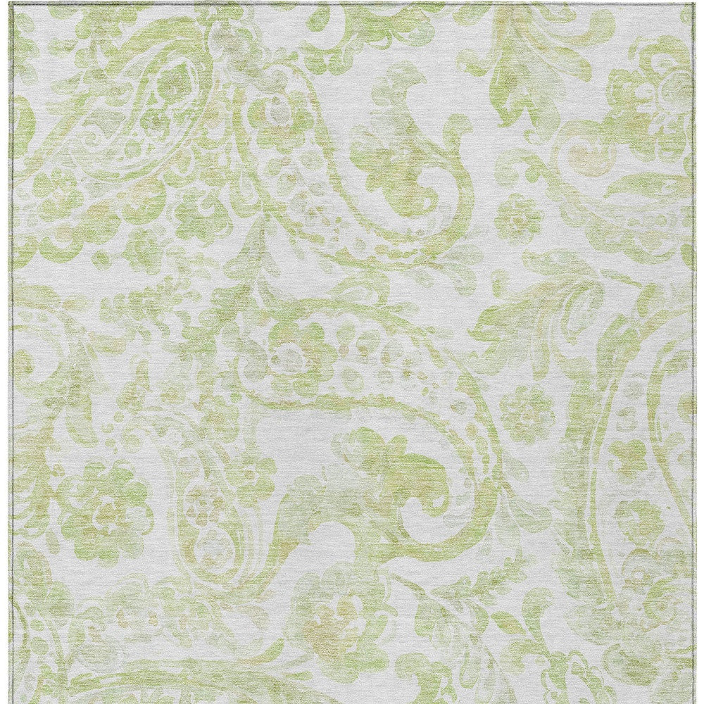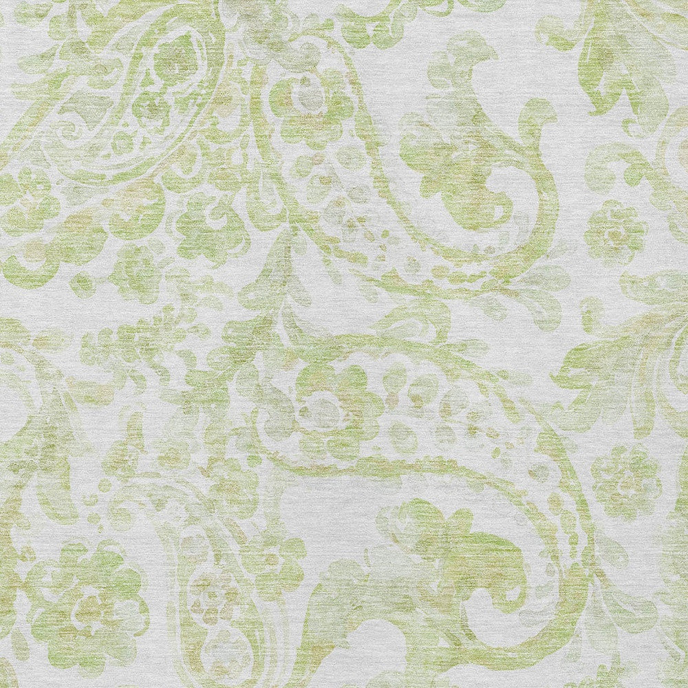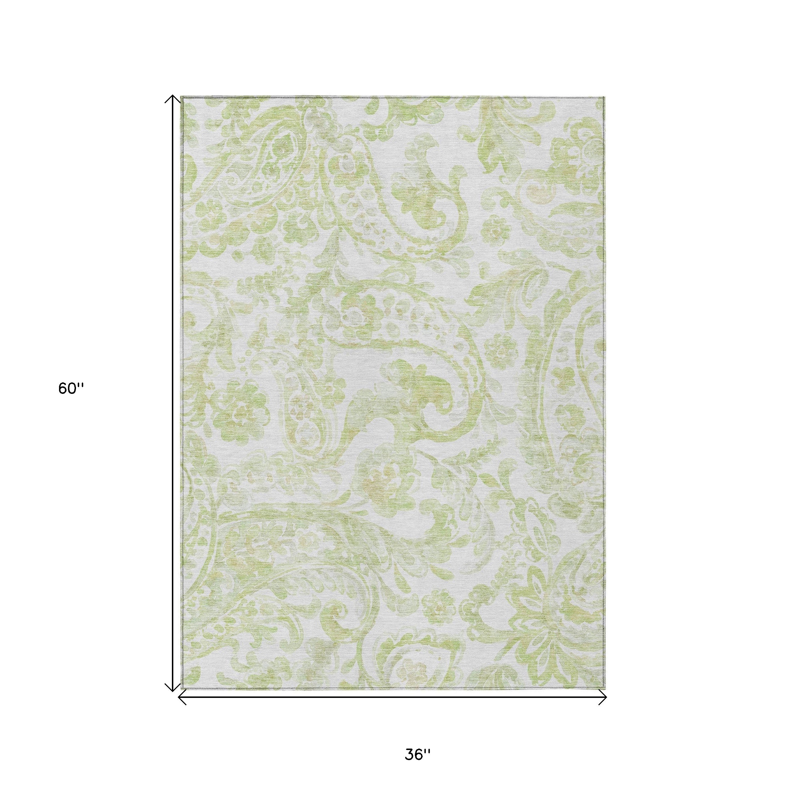 3' X 5' Sage Green And Ivory Paisley Washable Indoor Outdoor Area Rug