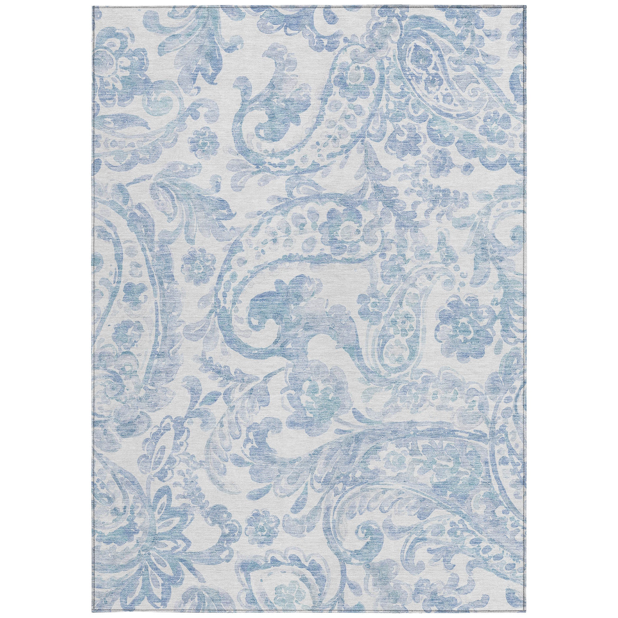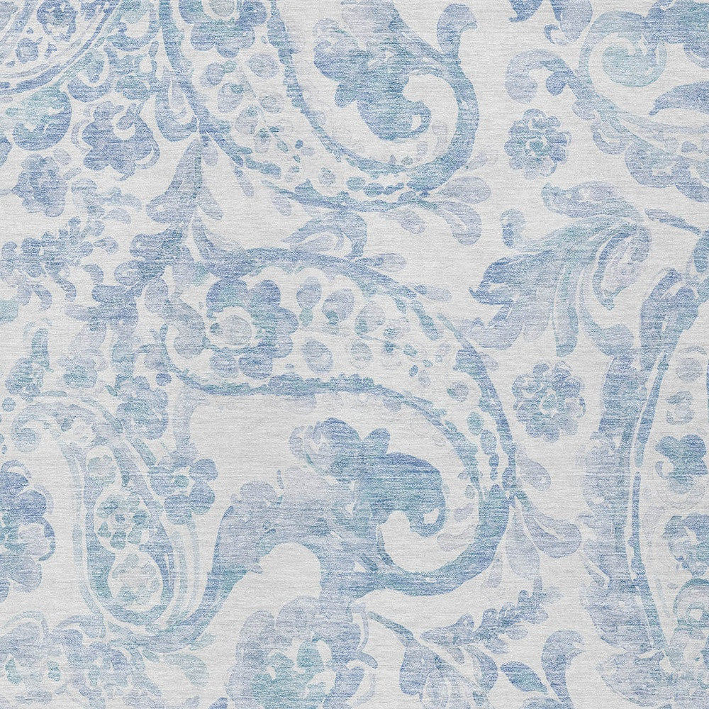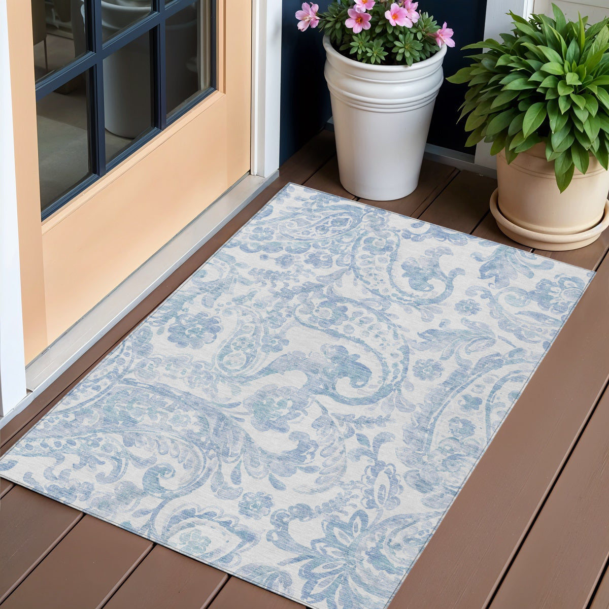 3' X 5' Sky Blue Denim Blue And Ivory Paisley Washable Indoor Outdoor Area Rug