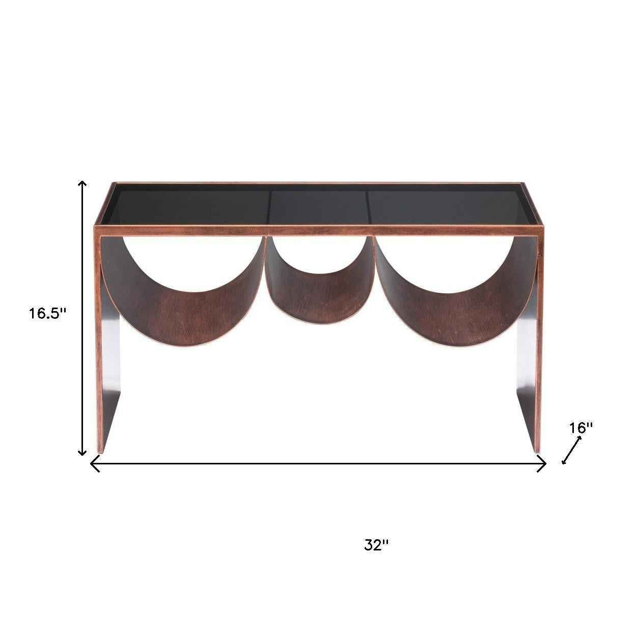 32" Black and Copper Mirrored Glass and Steel Solid Coffee Table