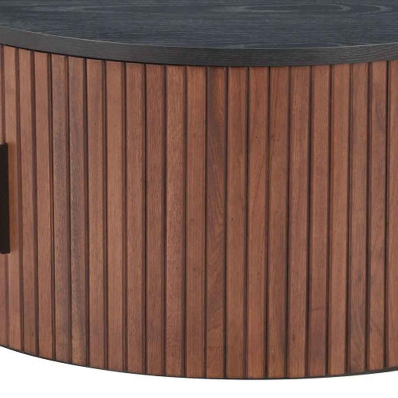 32" Black and Walnut Wood Round Drum Coffee Table