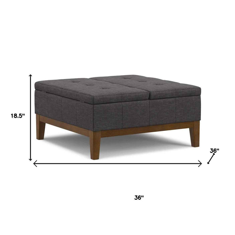 36" Walnut and Slate Gray Upholstery Storage Ottoman