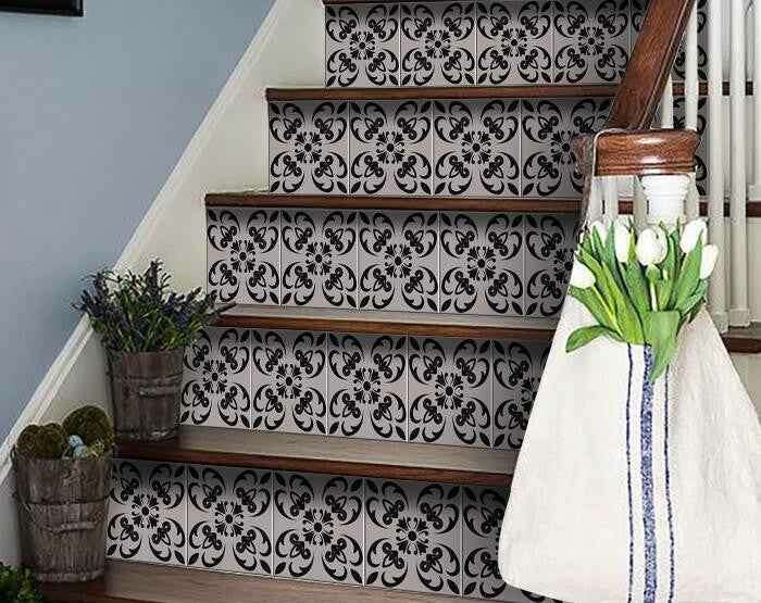 Create a unique look with these 4" x 4" Black and White Orchid Peel and Stick Removable Tile stickers. These fabulous peel and stick tiles will add sophisticated flair and design to your kitchen backsplash, fireplace mantel, stair treads, half wall, bathroom or nook. These 4" square tile stickers are an easy, no mess solution to complete a personalized and colorful room makeover. Easy to apply on any clean dry flat surface, and easy to remove. Multi use and multi-room appeal make this design option is perfect for renters, landlords, college students and homeowners alike. Peel and stick tile decals make it easy to turn your space into a home. Removable without damage to surfaces. One kit contains 24 stickers. Kit includes multiple design styles and colorations to be displayed in any arrangement you choose.