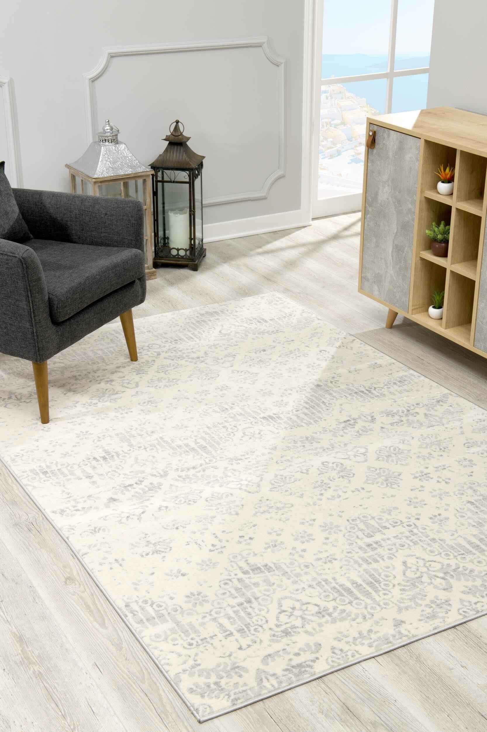 4’ X 6’ Ivory Distressed Ikat Pattern Area Rug "> "> Passer au contenu