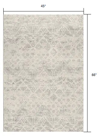 4’ X 6’ Ivory Distressed Ikat Pattern Area Rug