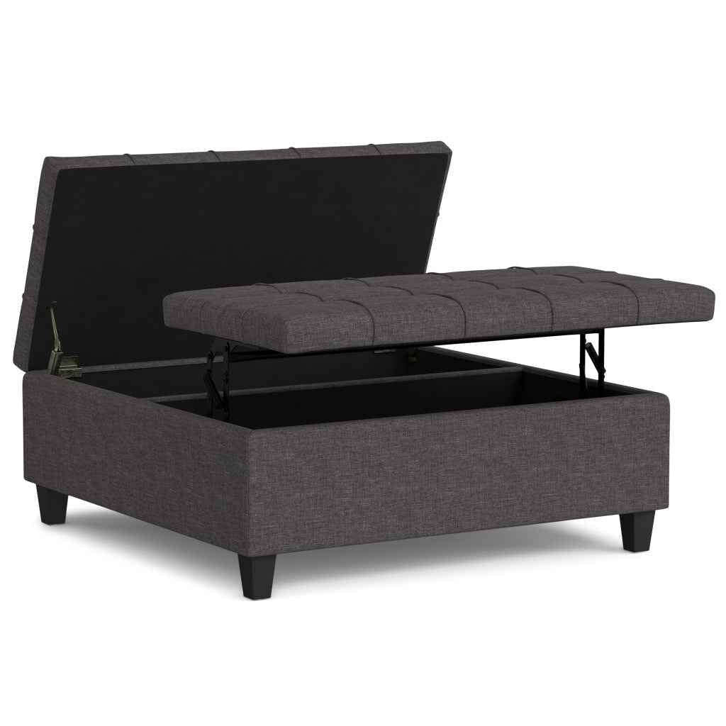 40" Gray and Brown Fabric Cocktail Ottoman With Storage - Passer au contenu
