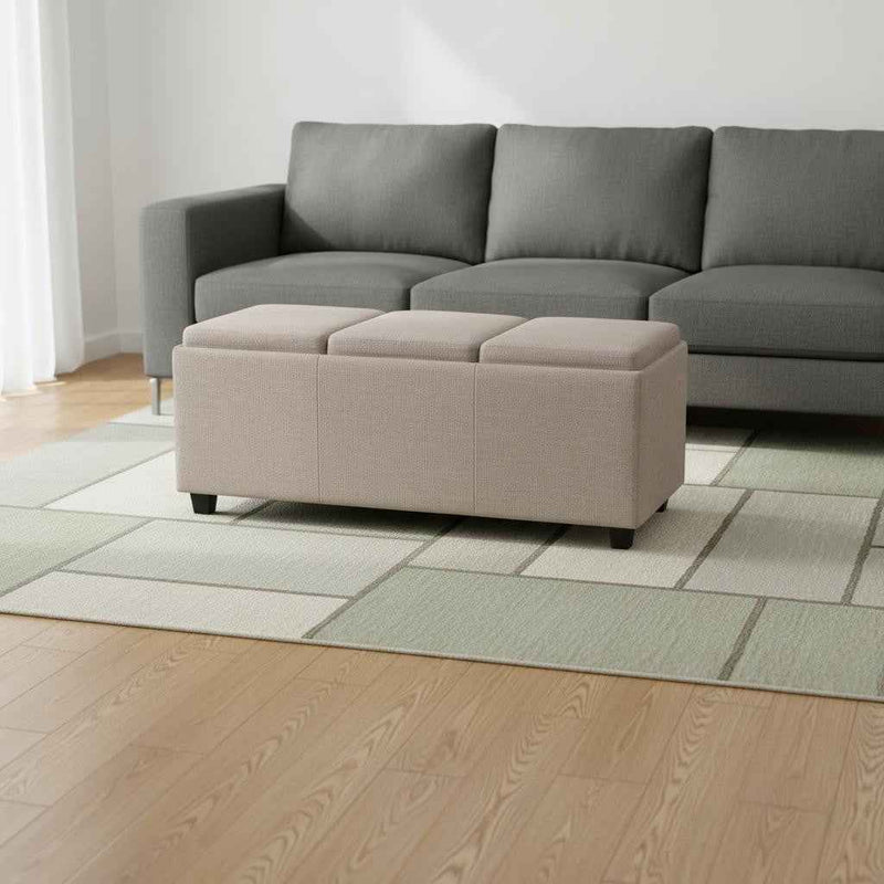 42" Dark Brown and Natural Upholstery Storage Ottoman Passer au contenu